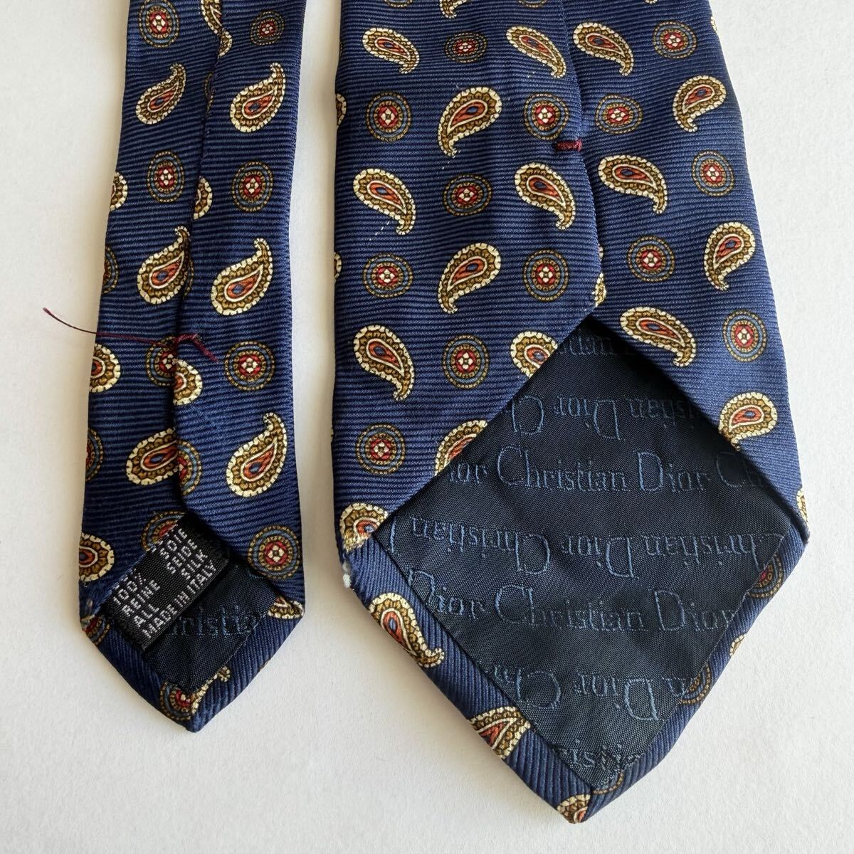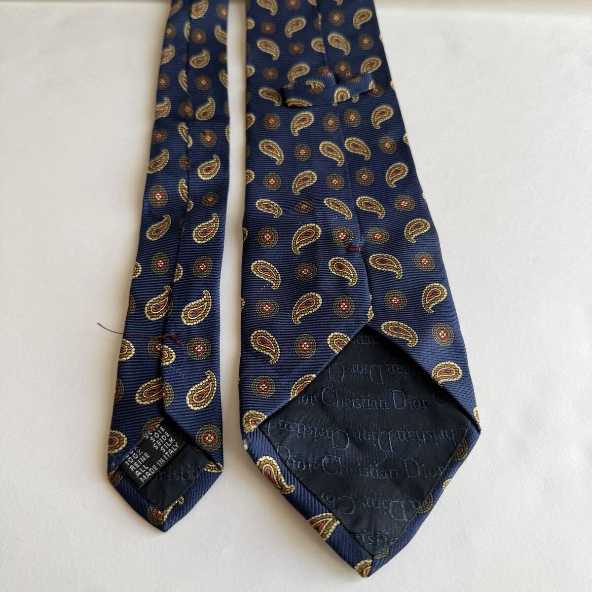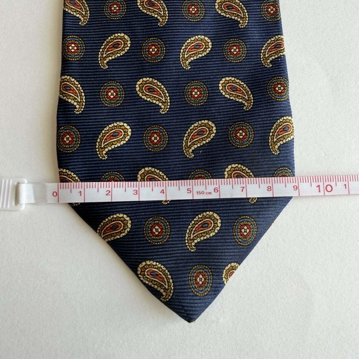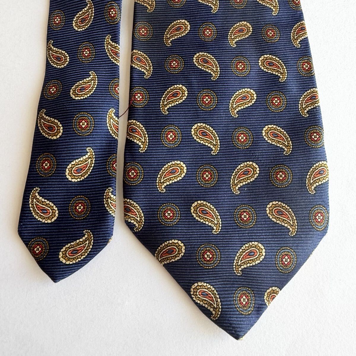 ネイビーのシルク製ペイズリー柄ネクタイ