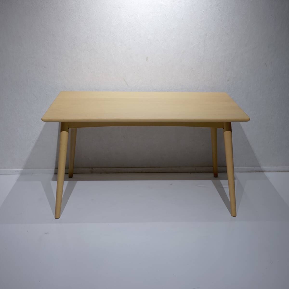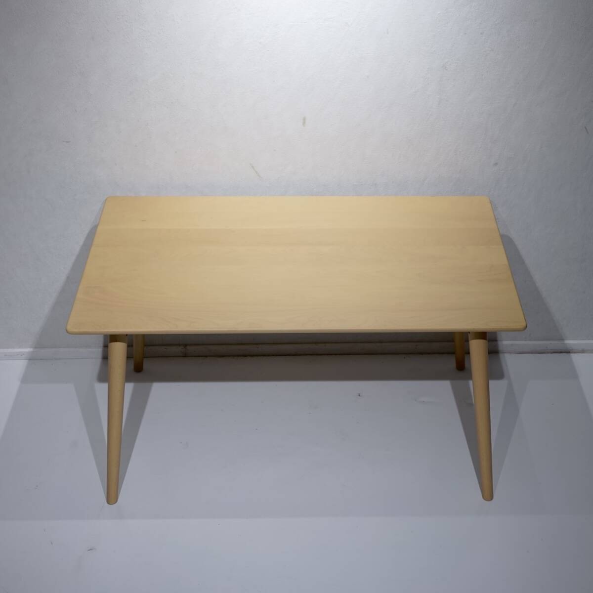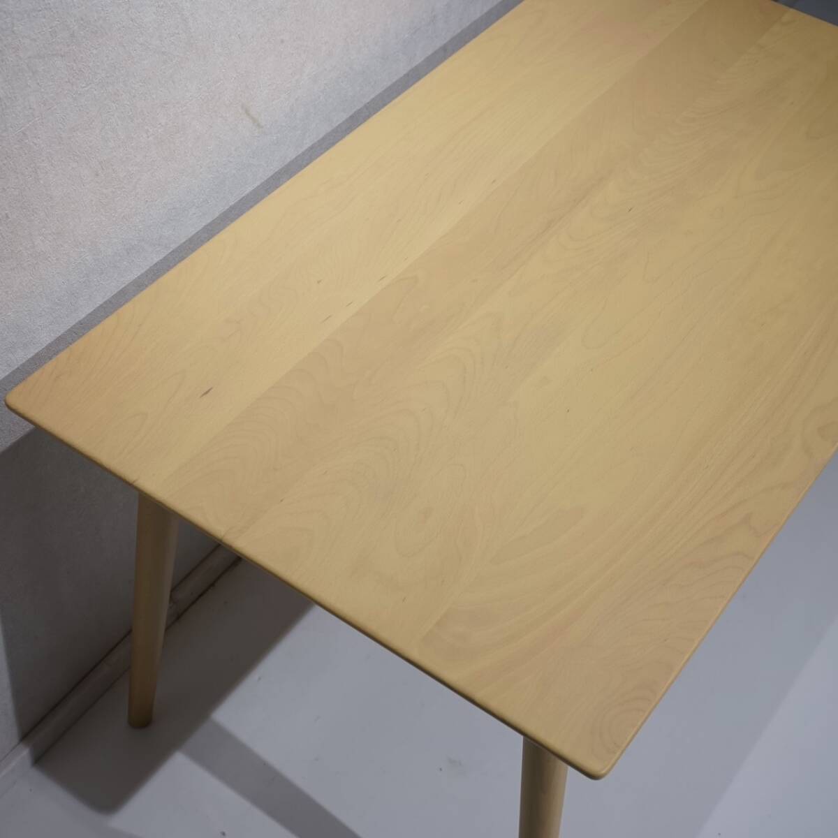 ナチュラルな木肌の美しい天板と、軽やかに外側へ伸びる先細りの丸脚が特徴で、暮らしに柔らかな温もりと洗練された印象を与えます。