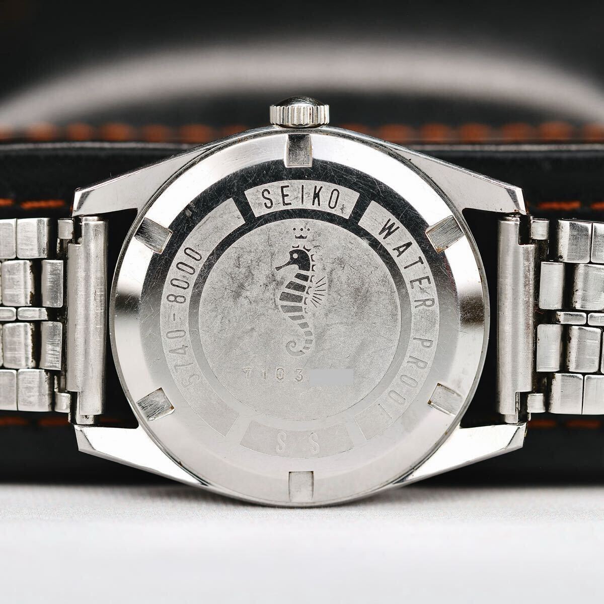 タツノオトシゴ刻印の裏蓋は、ロードマーベルのロービート機からハイビート機へモデルチェンジされる狭間の短い期間に生産されたもので、個体数が少ないです。