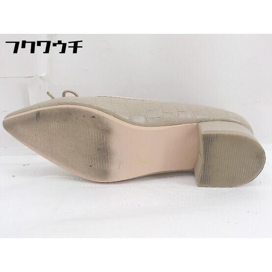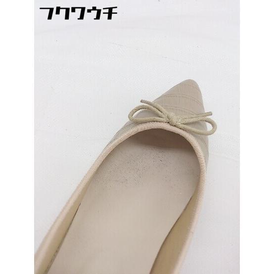 ◇ ◎ Le Lien plus ポインテッドトゥ リボン クロコダイル 型押し パンプス サイズS グレージュ レディース