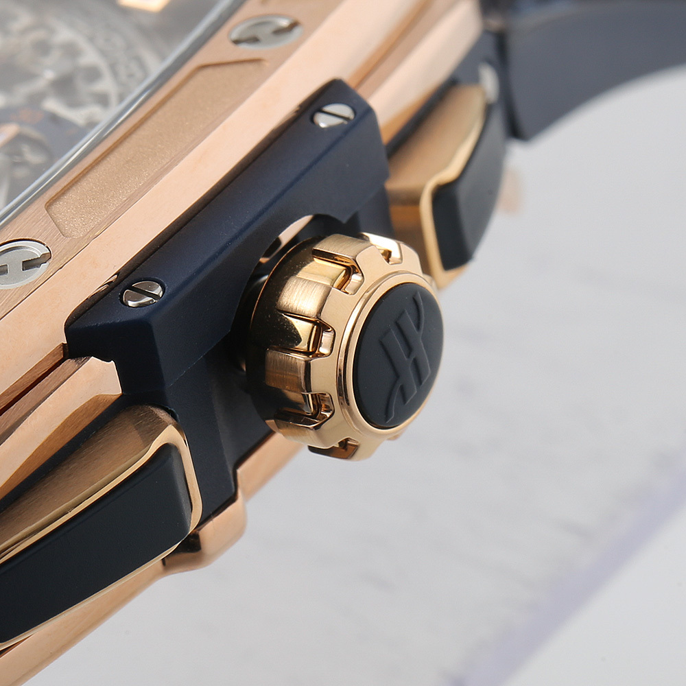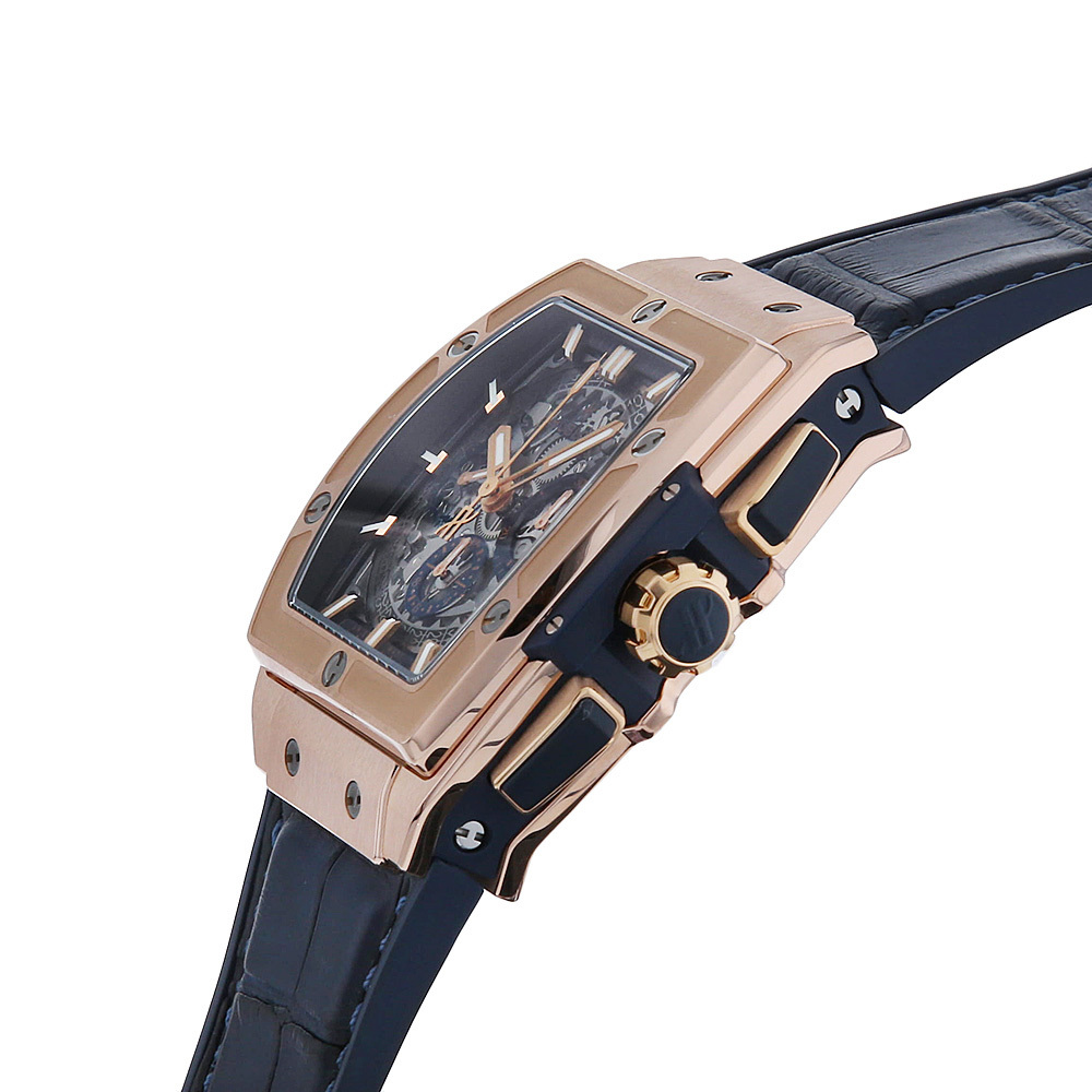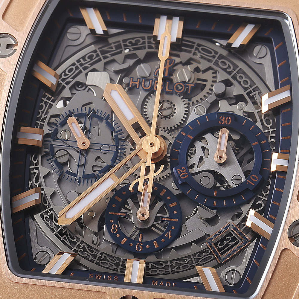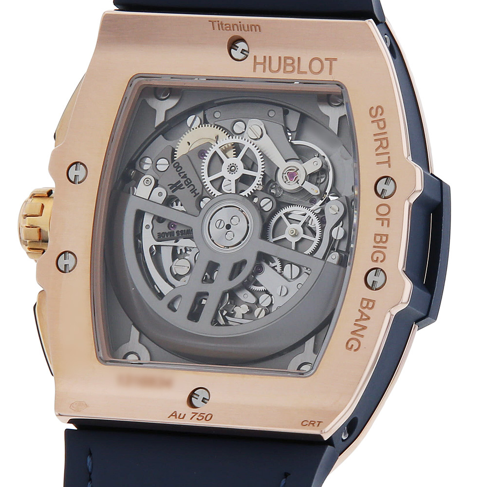 | モデル情報 | ウブロの基幹コレクションであるビッグ・バンのエレメントを踏襲して、新たな境地を拓いたのが2014年に誕生したスピリット オブ ビッグバンです。ケースに通常のピンクゴールドよりも赤みを強くする為に銅の配合量を上げ、さらにプラチナを加えることで長期間に渡り金属の変色を防ぐウブロ独自の素材、キングゴールドを採用しています。 |