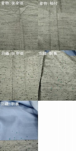 | 【正絹】 着物の状態は接写画像のように後身頃にヤケ、袖付に薄い汚れがございますが その他特に目立ったシミ汚れなどもなく大変良い状態です。 羽織の状態は接写画像のように後身頃・胴裏・羽裏にシミがございますが その他特に目立ったシミ汚れなどもなく大変良い状態です。 大変上質な逸品になります。 お安く出品致しますので、是非この機会にいかがでしょうか?