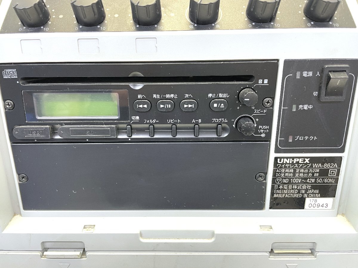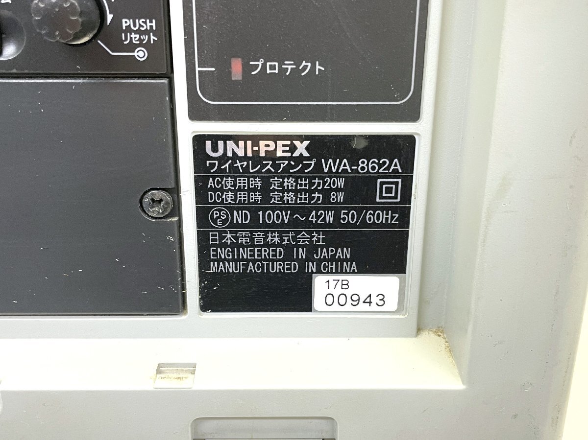 ★日本電音 ユニペックス WA-862A ワイヤレスアンプ 100V スピーカー 付属品あり ケース付き【10963971】