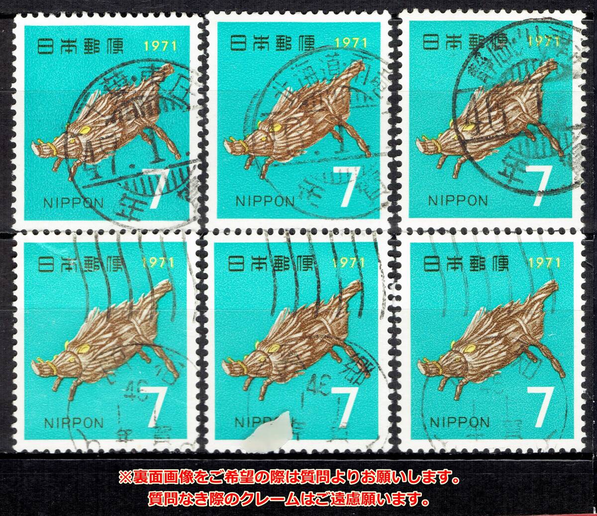 | 【使用済・年賀印ロット】1971年/年賀イノシシ(機械櫛型印)6種c | |