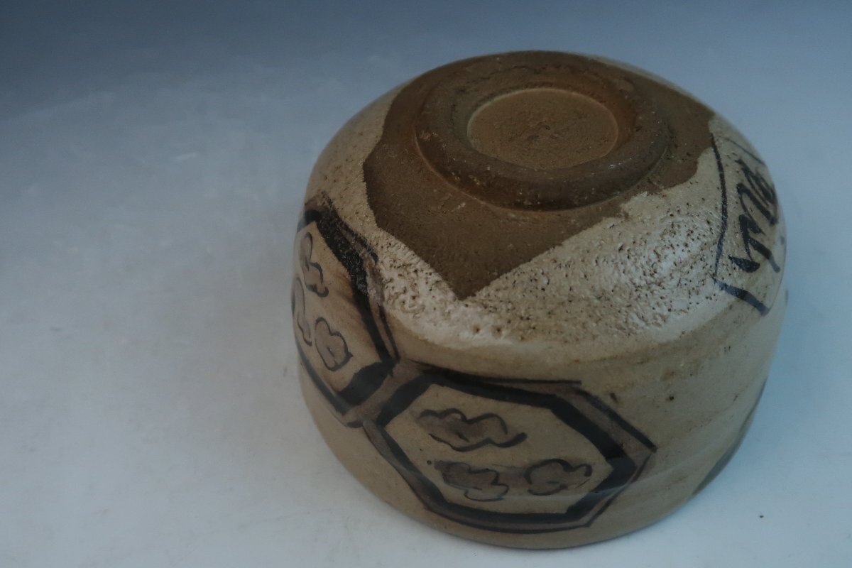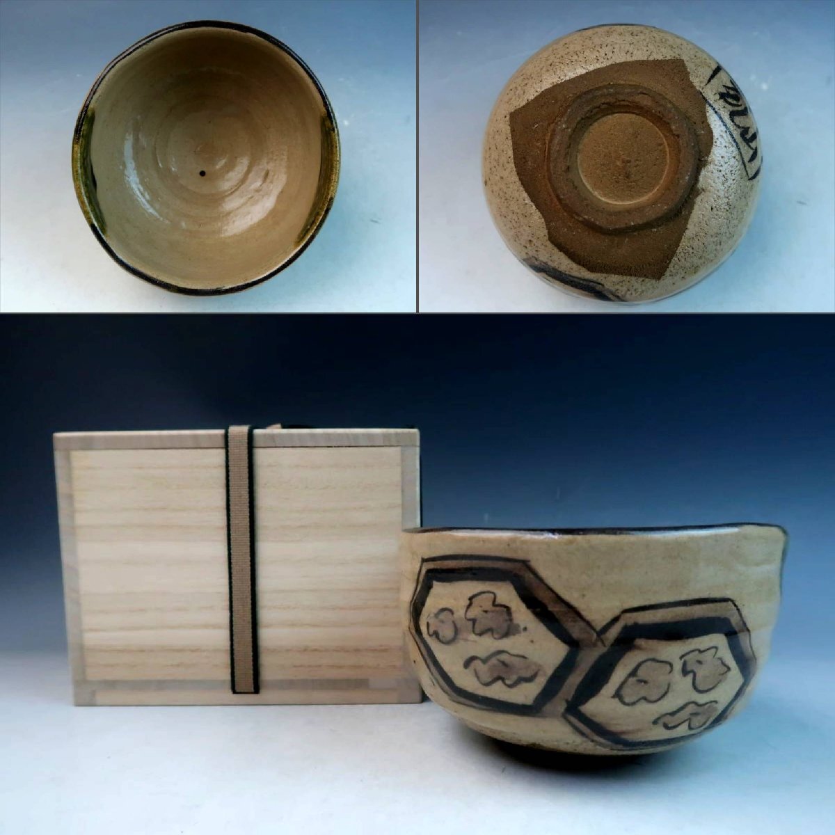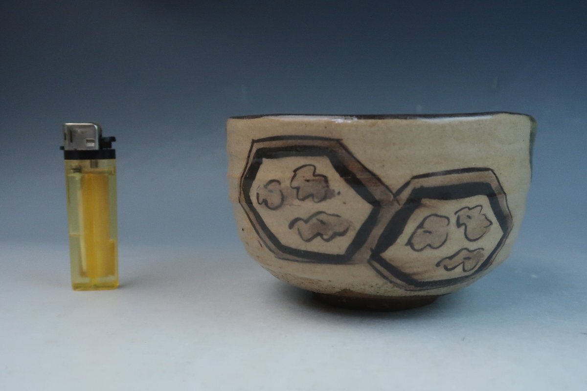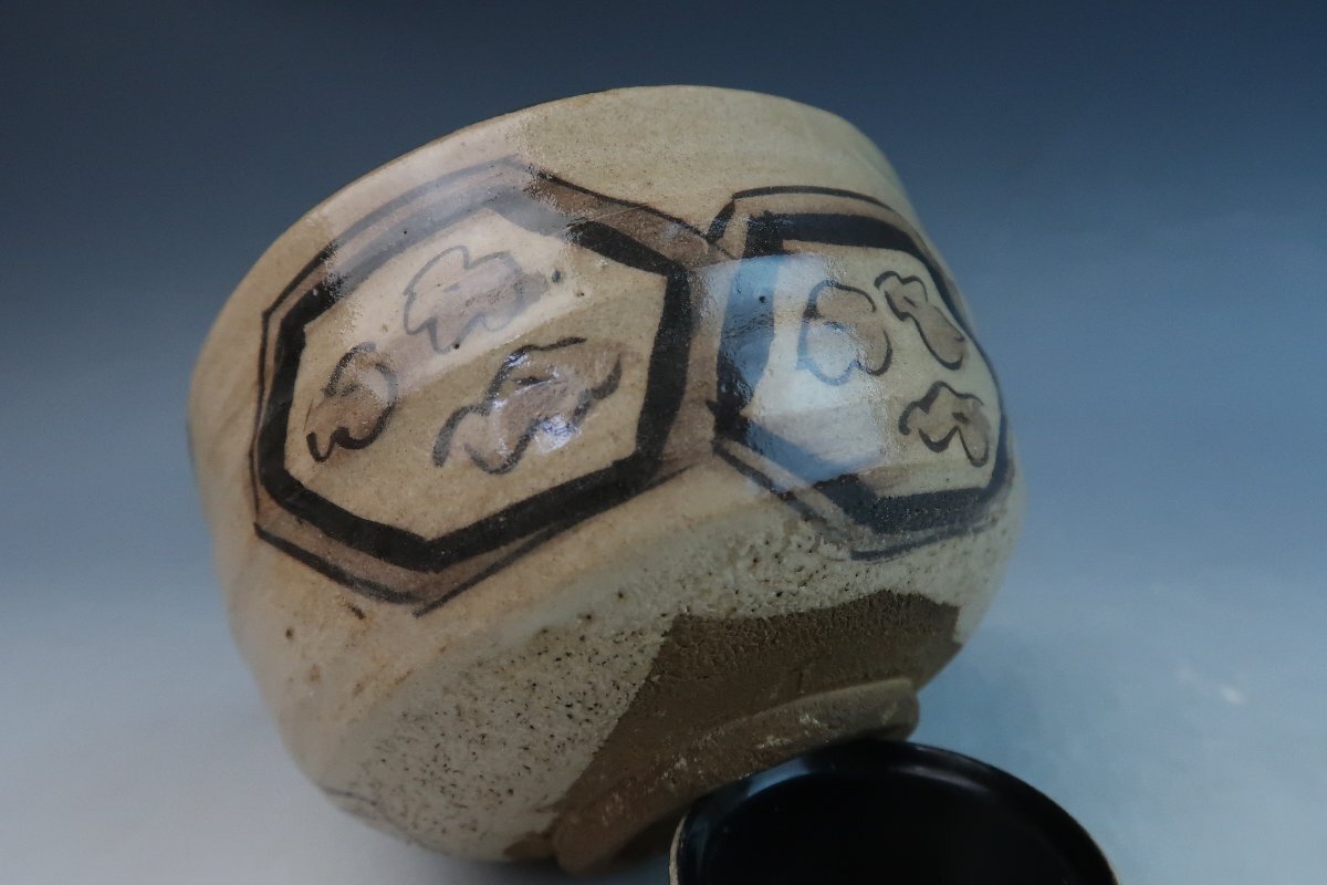 時代物 京焼 乾山焼 織部釉 鉄絵 亀甲文 乾山写茶碗 抹茶碗 無傷 茶器 茶道具 清水焼 古陶磁器 古美術骨董品 BNT206