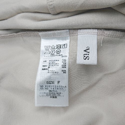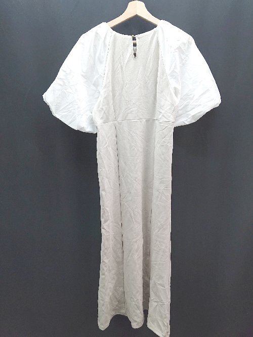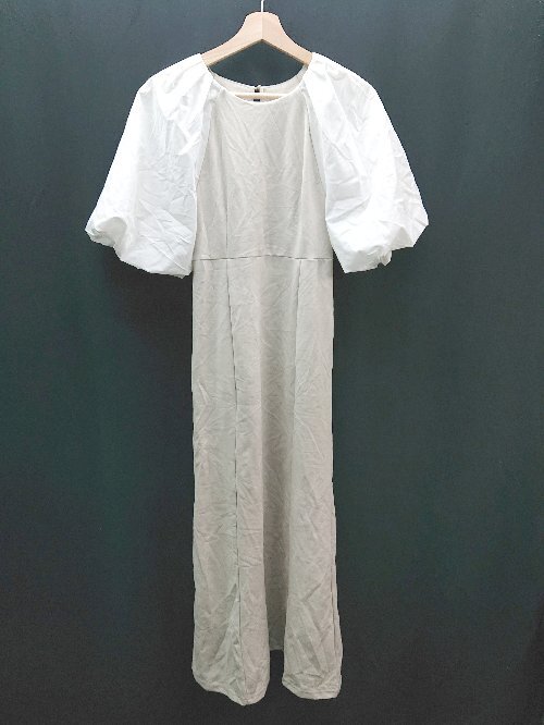 ◇ ViS ビス ラウンドネック ボリューム袖 バックボタン 半袖 ロング ワンピース サイズF ベージュ レディース E