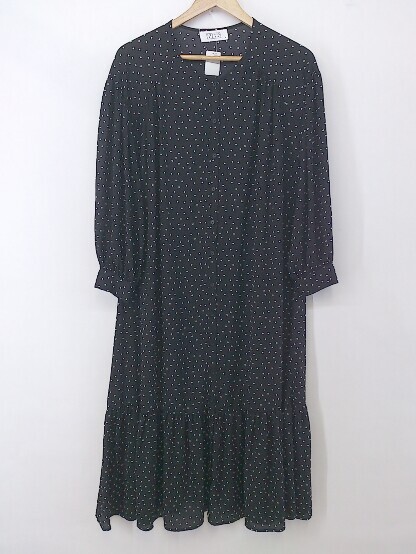 ◇ LOWRYS FARM ローリーズファーム 水玉 ドット 長袖 ロング ワンピース サイズM ブラック レディース P