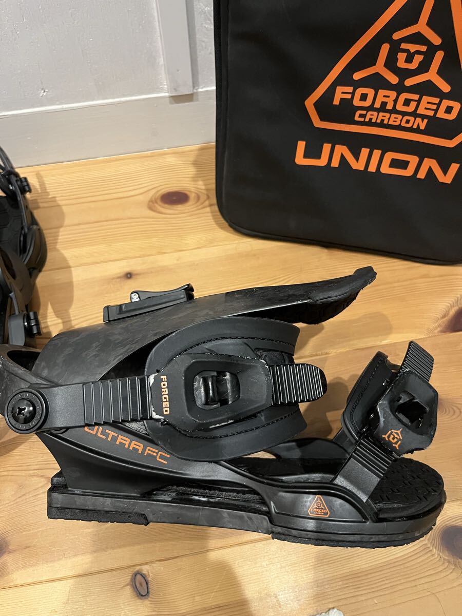 当時のUNIONの最高峰バインで全体にFORGED CARBONを使用しており軽量でとても硬いバインです。カービングや高速での使用でとても頼りになるバインで中上級者向けになります。初心者には硬く反応が早くシビアなコントロールが求められるのでオススメ出来ません。