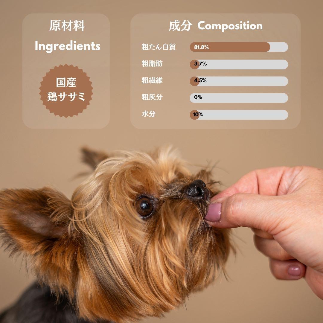 ◇ 天然素材100%:九州産鶏ササミのみを使用し、防腐剤・着色料・人工香料は不使用