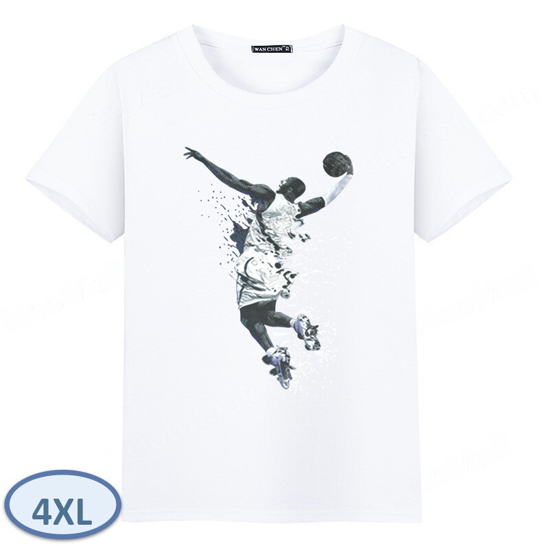 夏にピッタリ ☆ 丸首 半袖 Tシャツ【069】 ホワイト 4XLサイズ トップス シャツ シンプル イラスト プリント 春夏