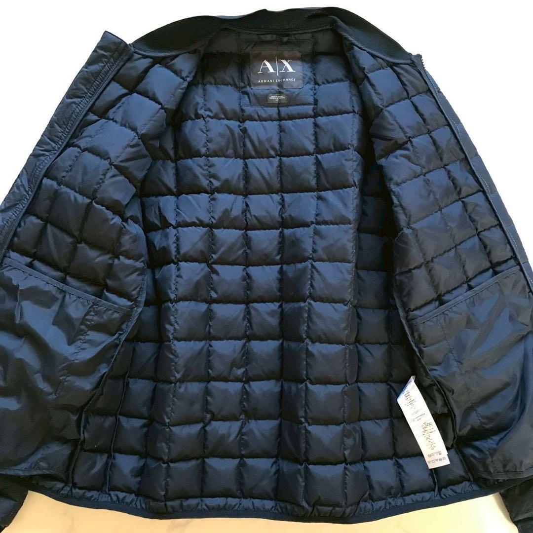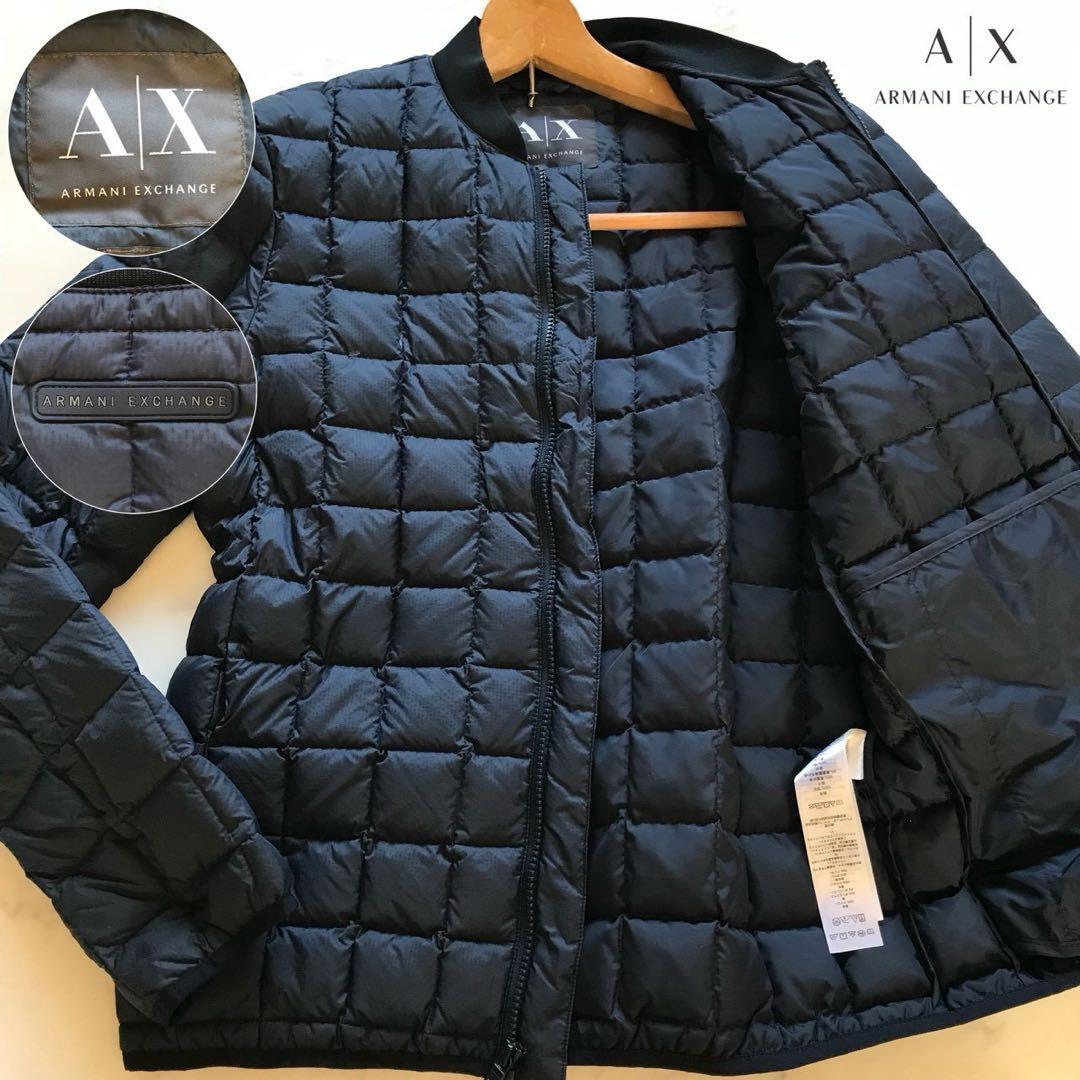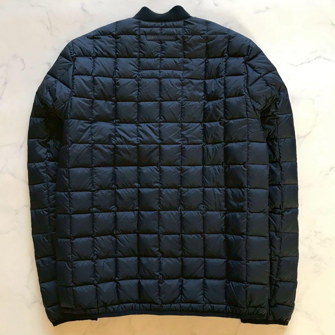 美品/L相当●アルマーニ ARMANI キルティングジャケット 中綿ダウンジャケット 背面ロゴプレート ネイビー 紺色 メンズ ビジネス 定価10万