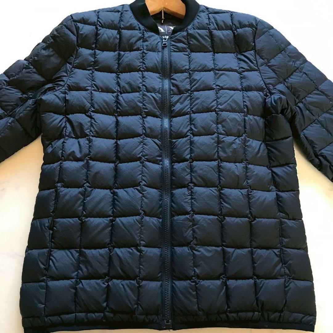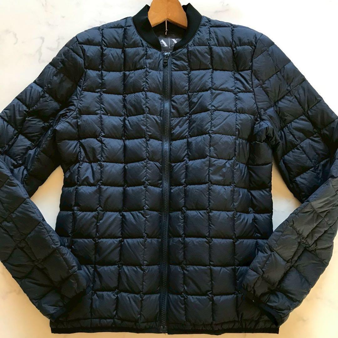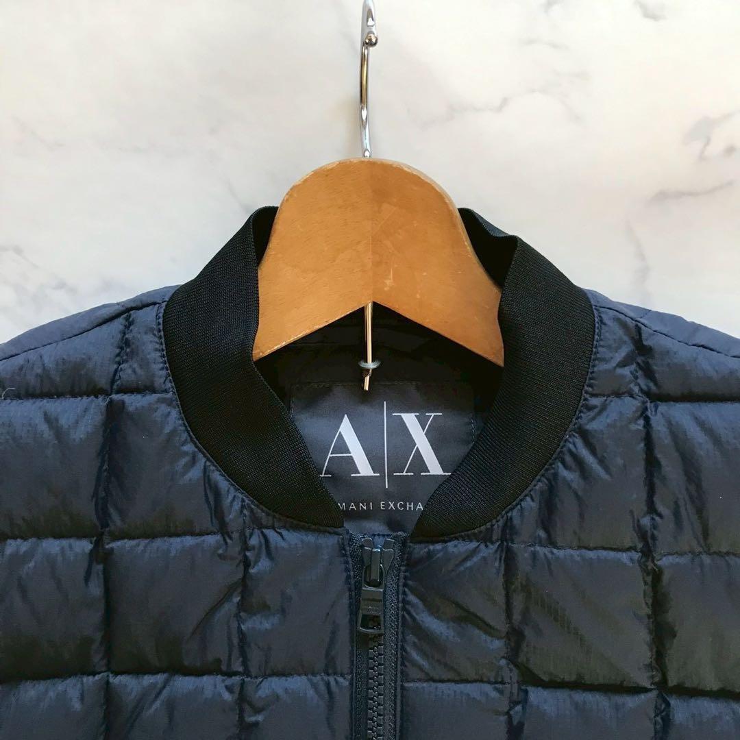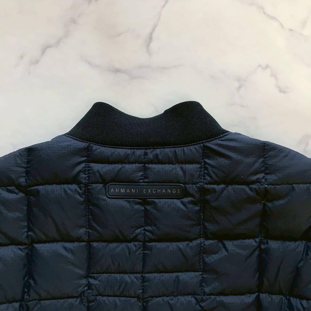 美品/L相当●アルマーニ ARMANI キルティングジャケット 中綿ダウンジャケット 背面ロゴプレート ネイビー 紺色 メンズ ビジネス 定価10万