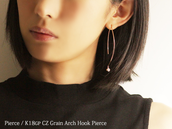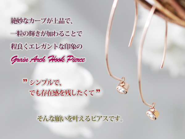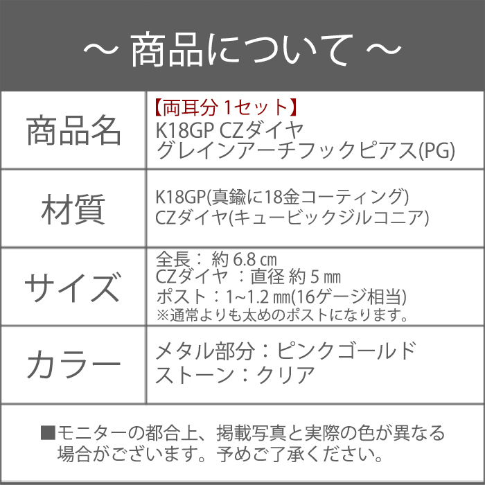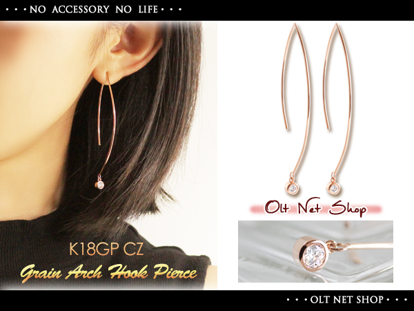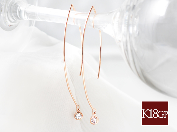 550円スタート/新品/ピアス/K18GP/ロング/フック/レディース/18金/ピンクゴールド/一粒/ダイヤ/CZ/両耳/シンプル/長い/上品/女性