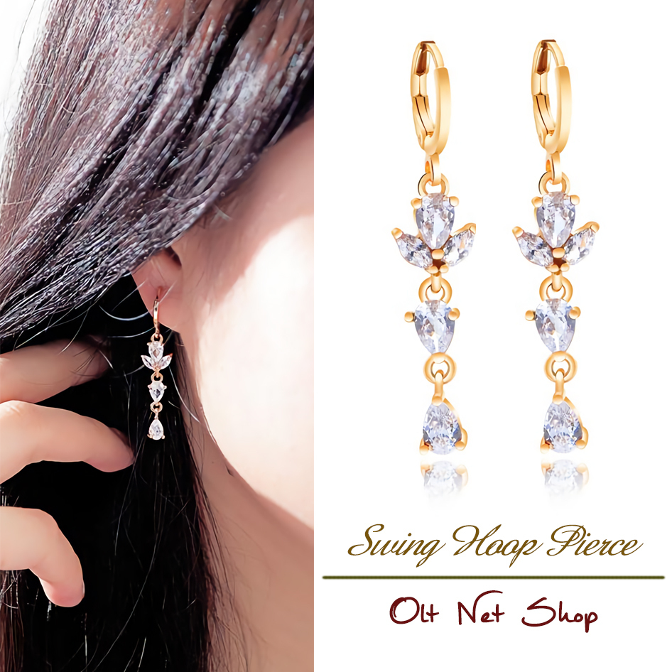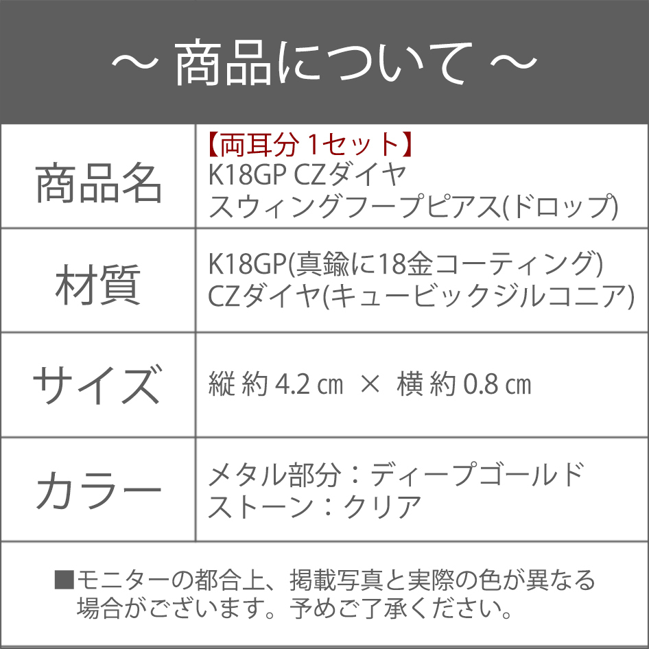 新品/ピアス/K18GP/ドロップ/揺れる/ロング/ダイヤ/18金/ゴールド/レディース/両耳/開閉式/フープ/シンプル/長い/上品/CZ/女性