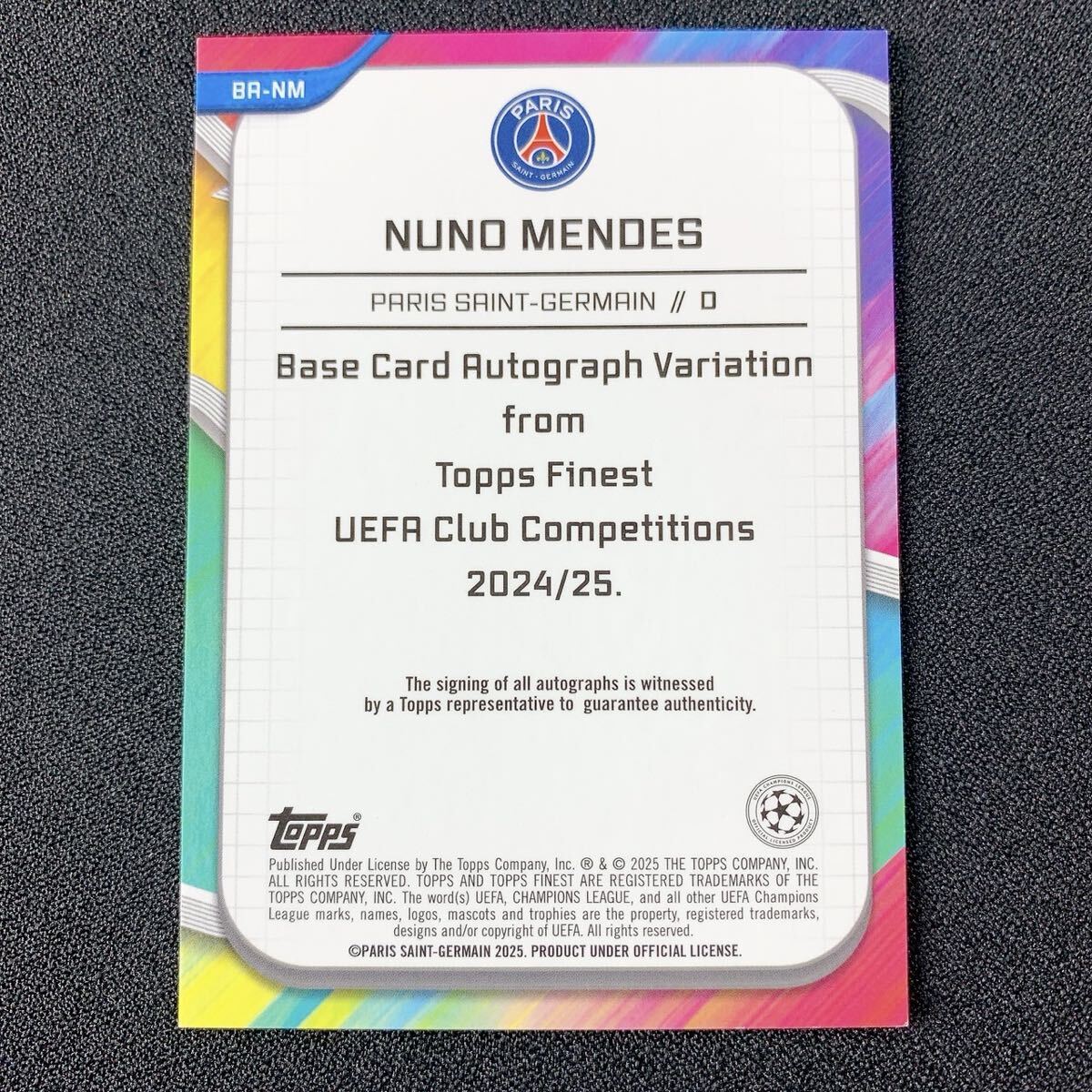 ・カード名:1円スタート【NUNO MENDES】75シリ 直筆サインカード Topps Finest Auto Paris Saint-Germain ヌーノ メンデス PSG パリサンジェルマン