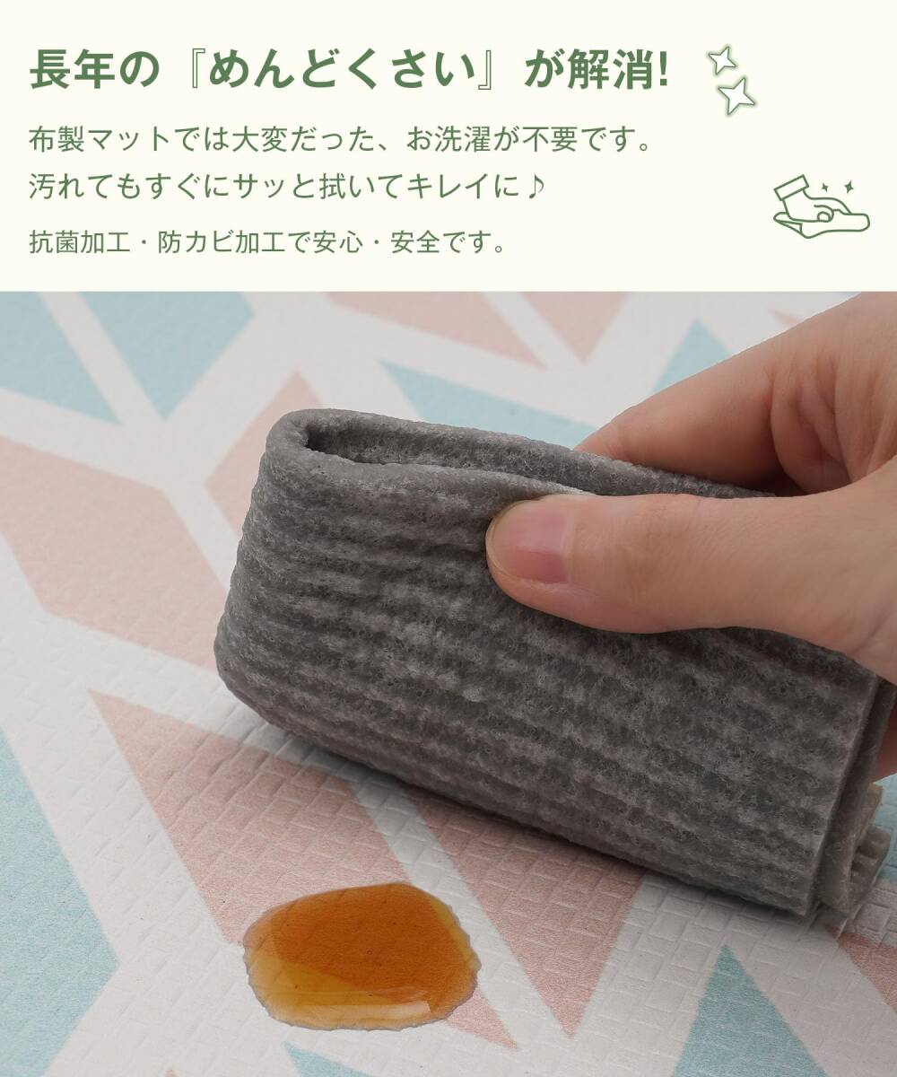 ・「抗菌&難燃性」高い抗菌効果で、雑菌の繁殖や臭いを抑制し、マットを清潔に保ちます。燃えにくく、万が一マットに着火した場合も、燃え広がることがないので安心です。