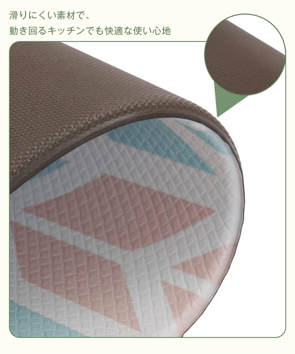 ・「お掃除ラクラク・お洗濯の必要なし」水に強い塩化ビニル素材のキッチンマットで水しぶきや油汚れも、サッと拭き取れます。お洗濯の必要がなく、掃除機をかければゴミも簡単に取れるのでお掃除が楽になり、 ロボット掃除機も対応できますので、キッチンを清潔に保ちやすくなります。