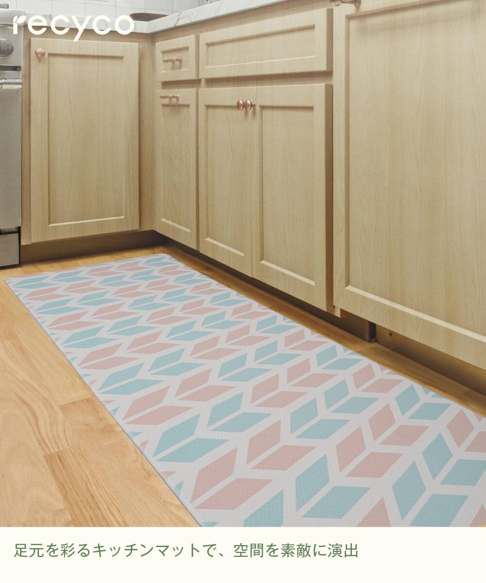 RECYCO キッチンマット 拭ける 洗濯いらず 低反発 クッション 踏み心地いい ポリ塩化ビニール ずれない 台所 マット はっ水 防汚