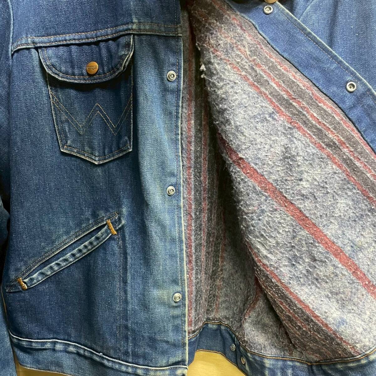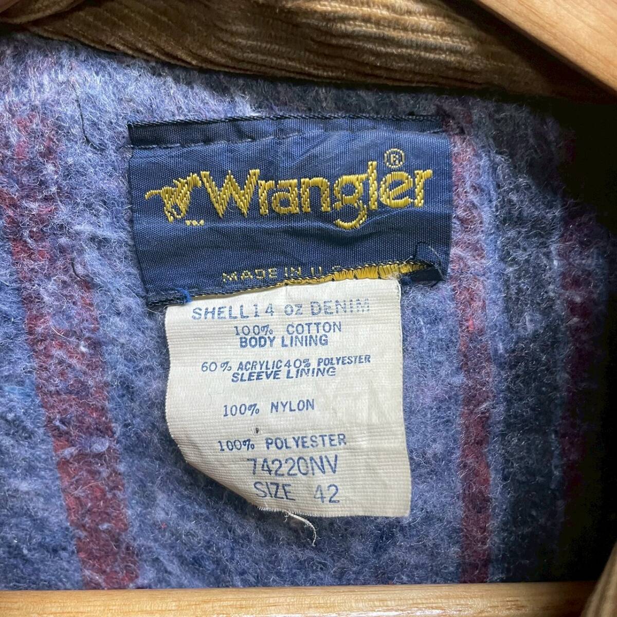 80s USA製 Wrangler ラングラー 74220NV 裏ブランケット デニムジャケット トラッカー 42 80 ブルー インディゴ