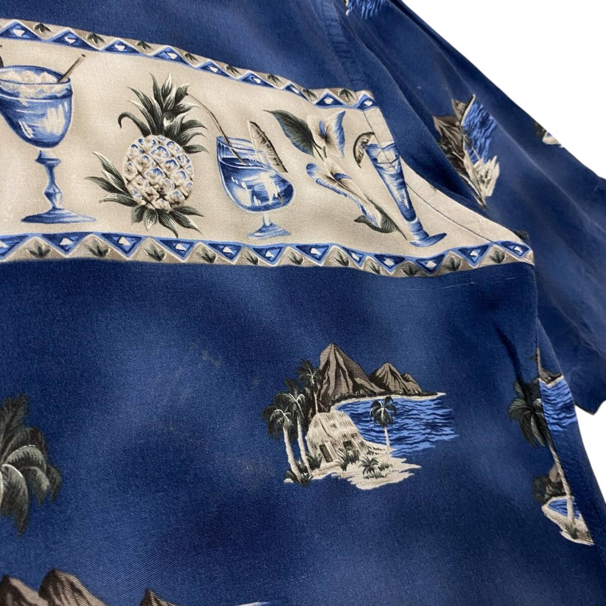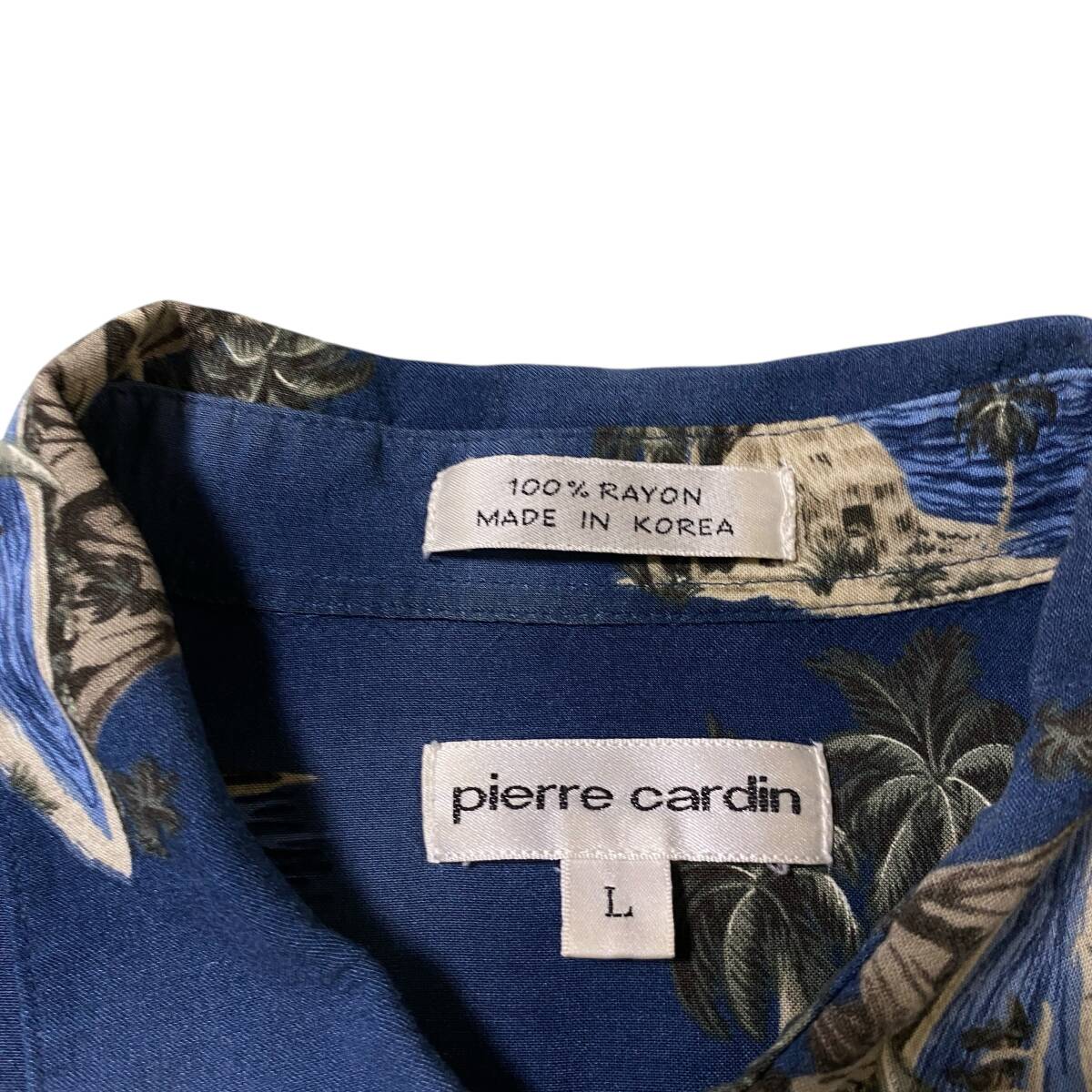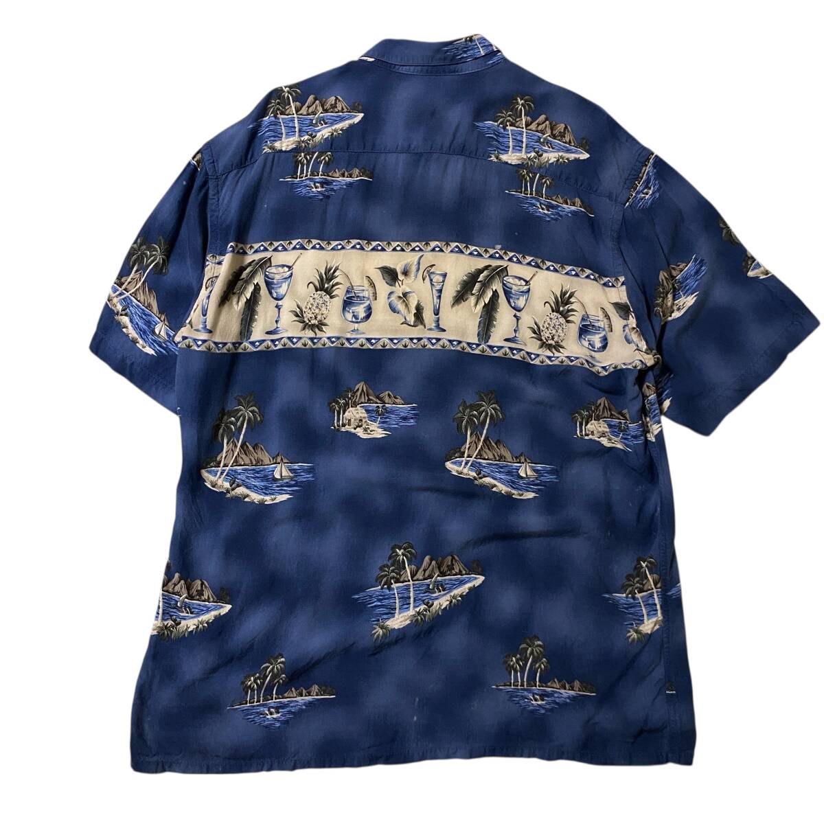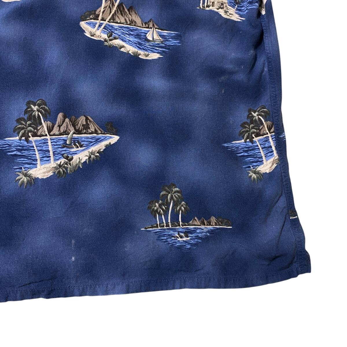 アメリカ古着 ピエールカルダン アロハシャツ ハワイアン レーヨン ネイビー Lサイズ ヴィンテージ 【AL453】