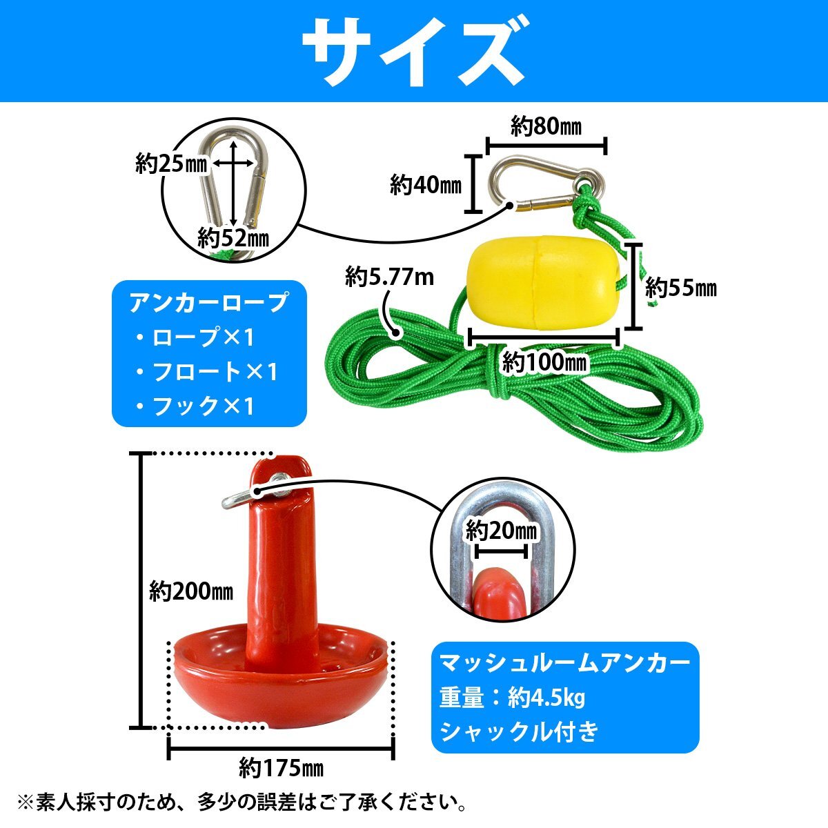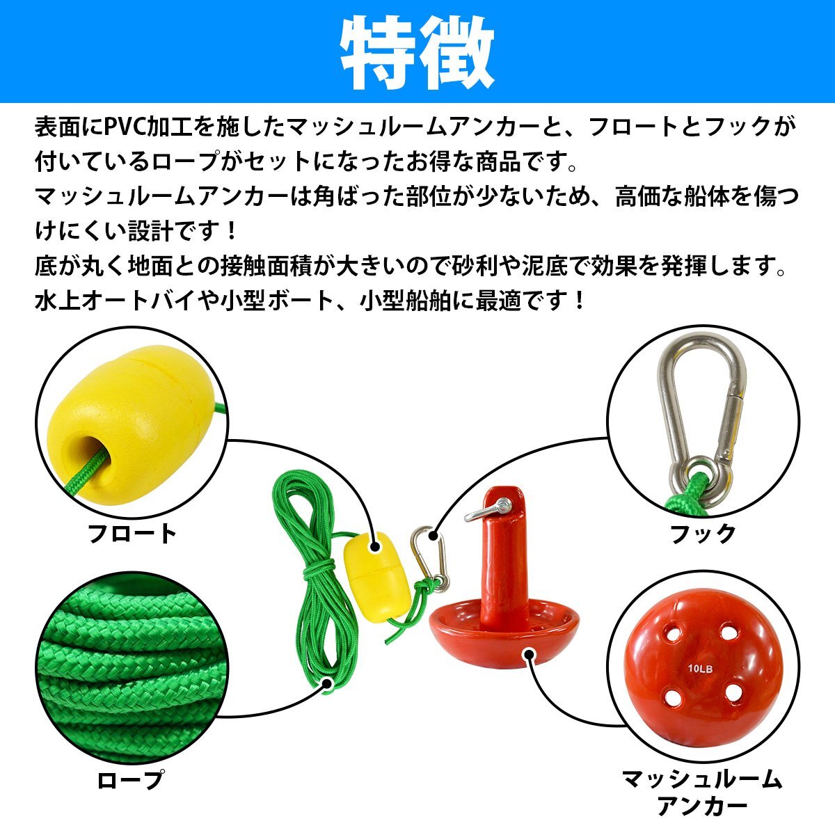 『ロープ アンカー セット』マッシュルームアンカー 10LBS 4.5kg 赤/レッド フロート/ロープ/フック付!ジェットスキー 船