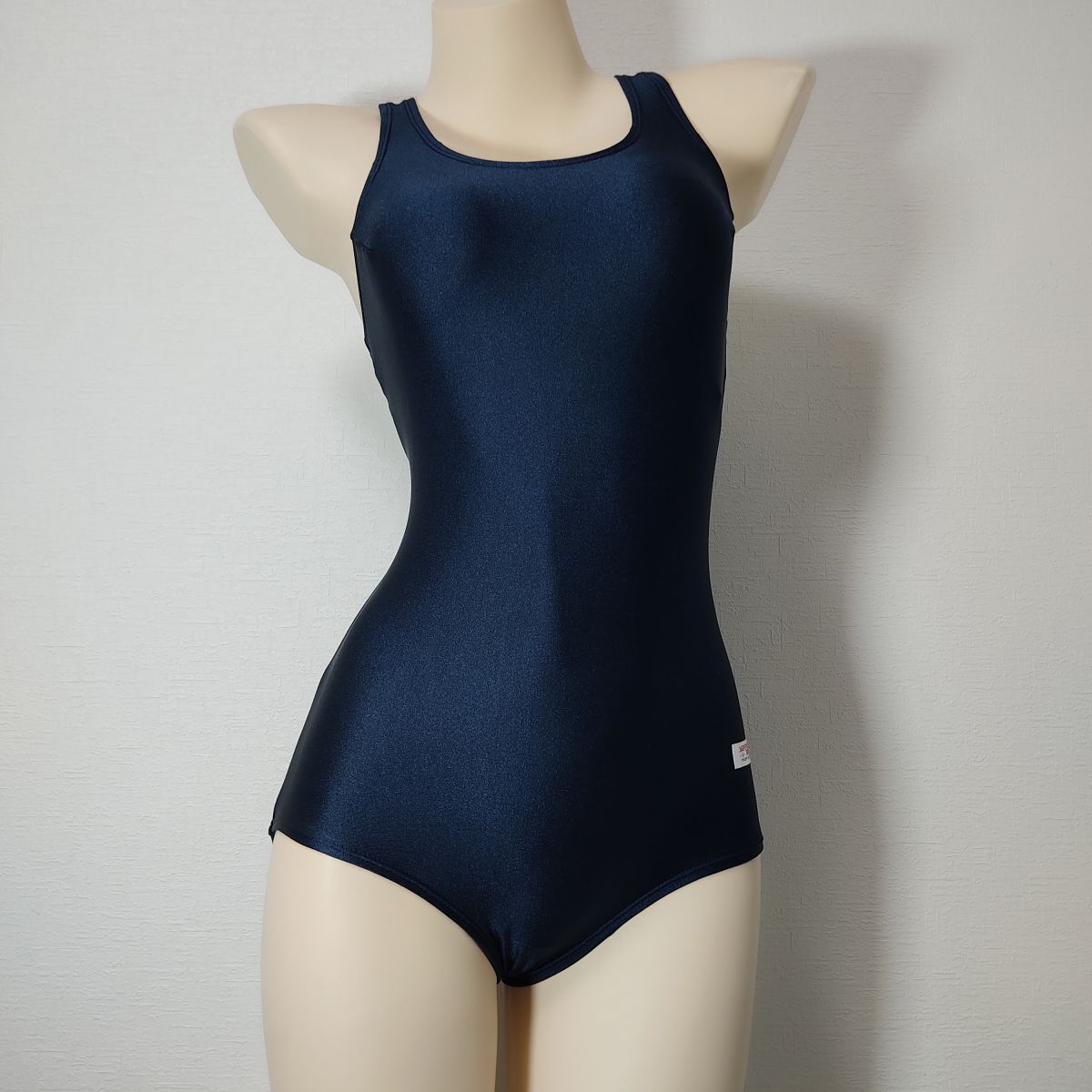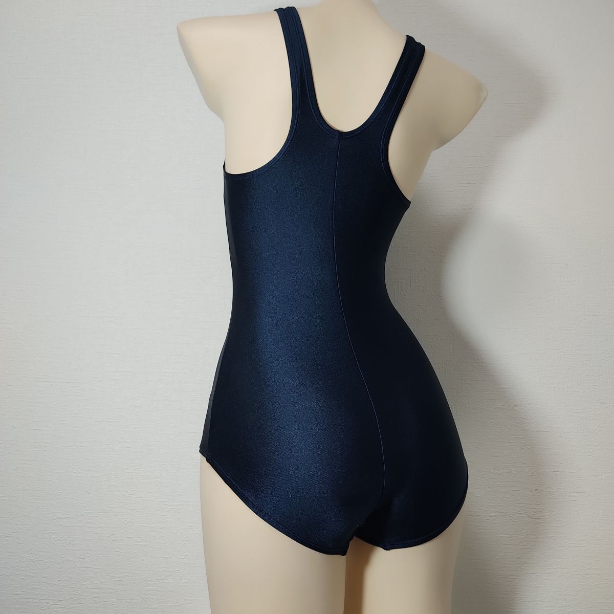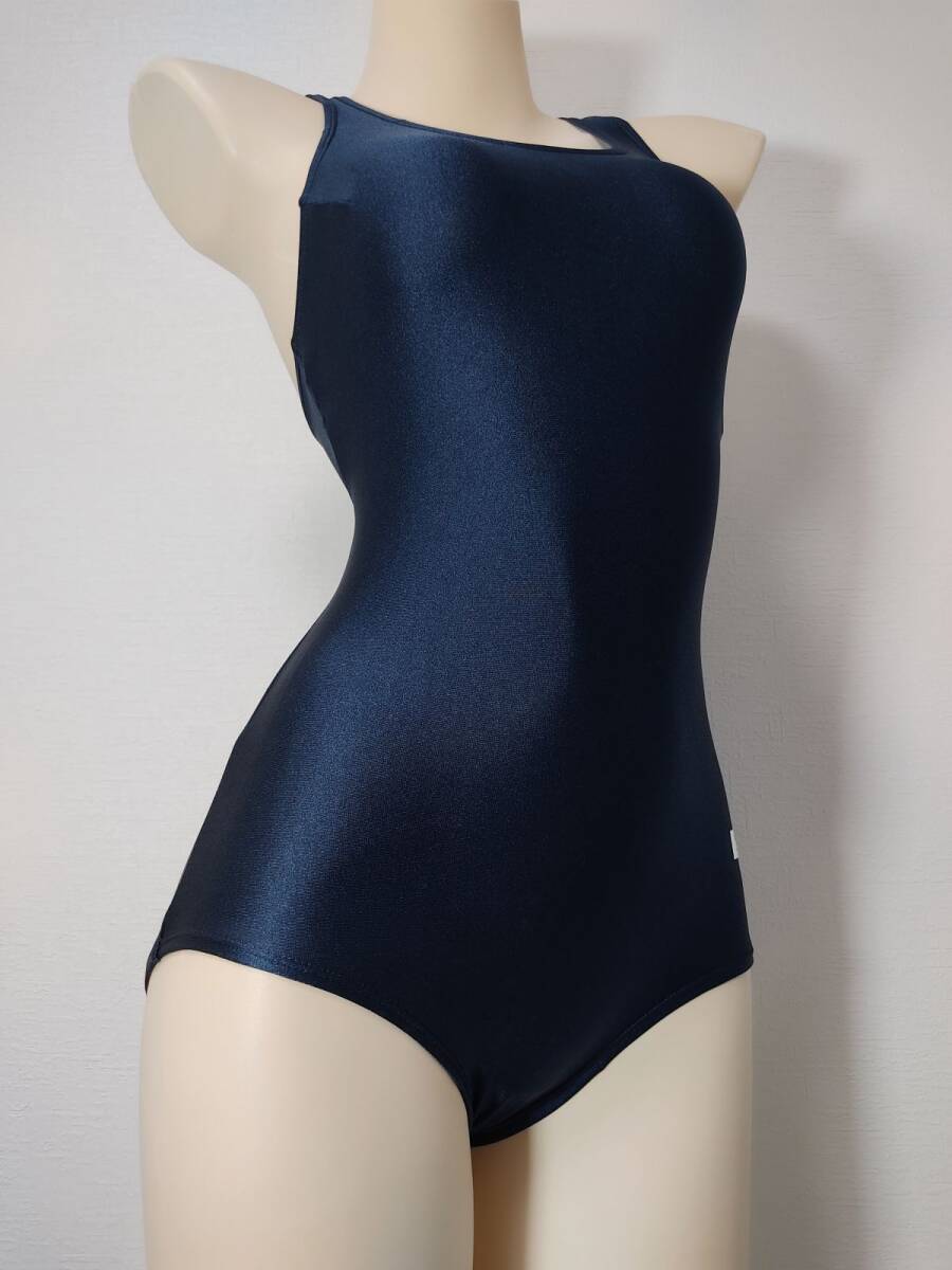 13【リサイクル品】小松ニット女子競泳水着(M)★光沢ネイビー濃紺★伸縮性あり男性も