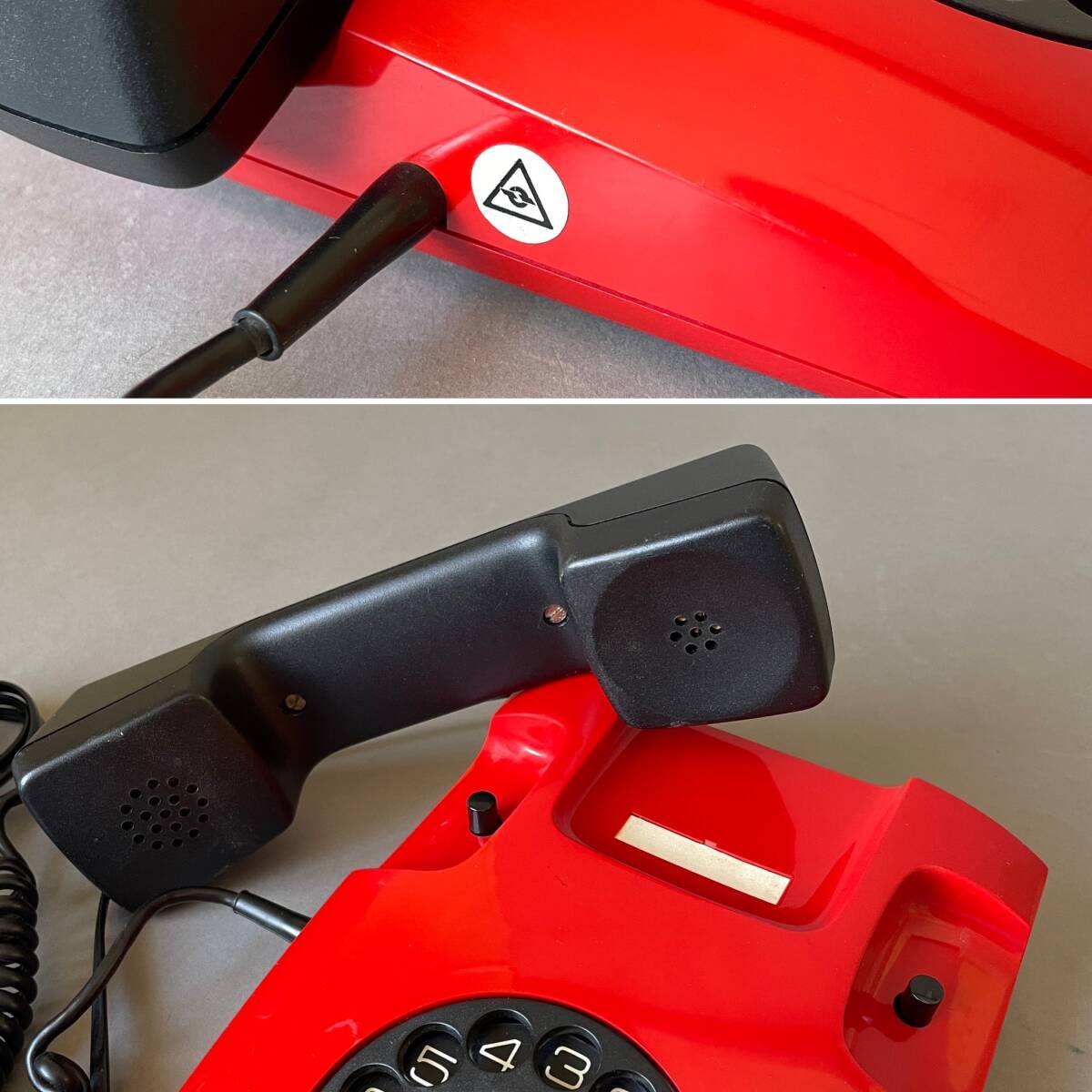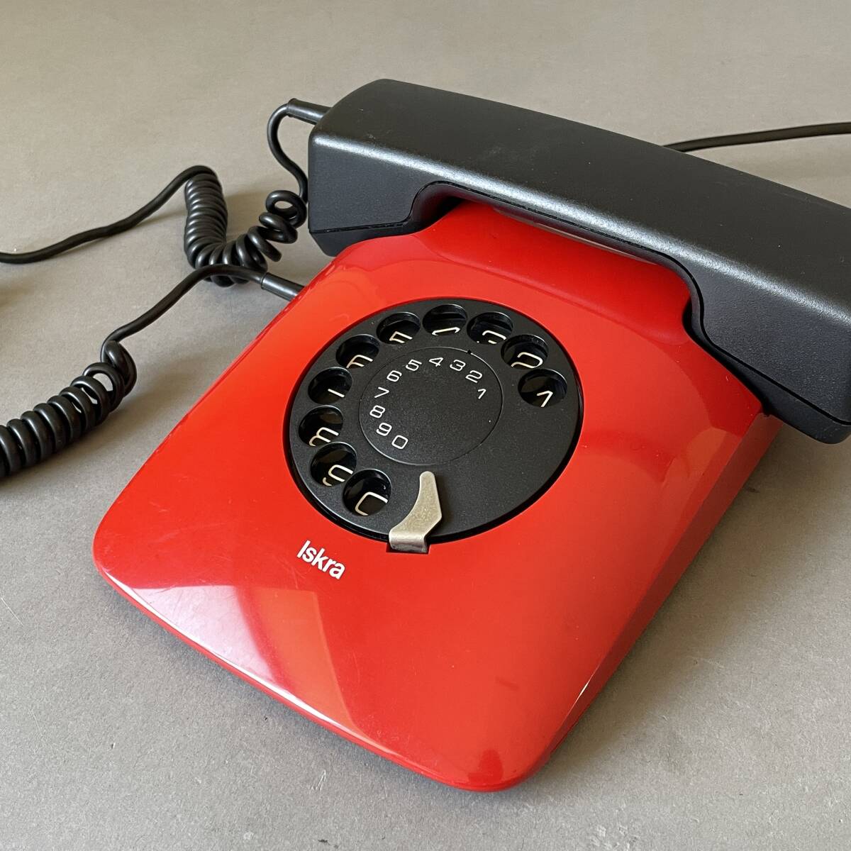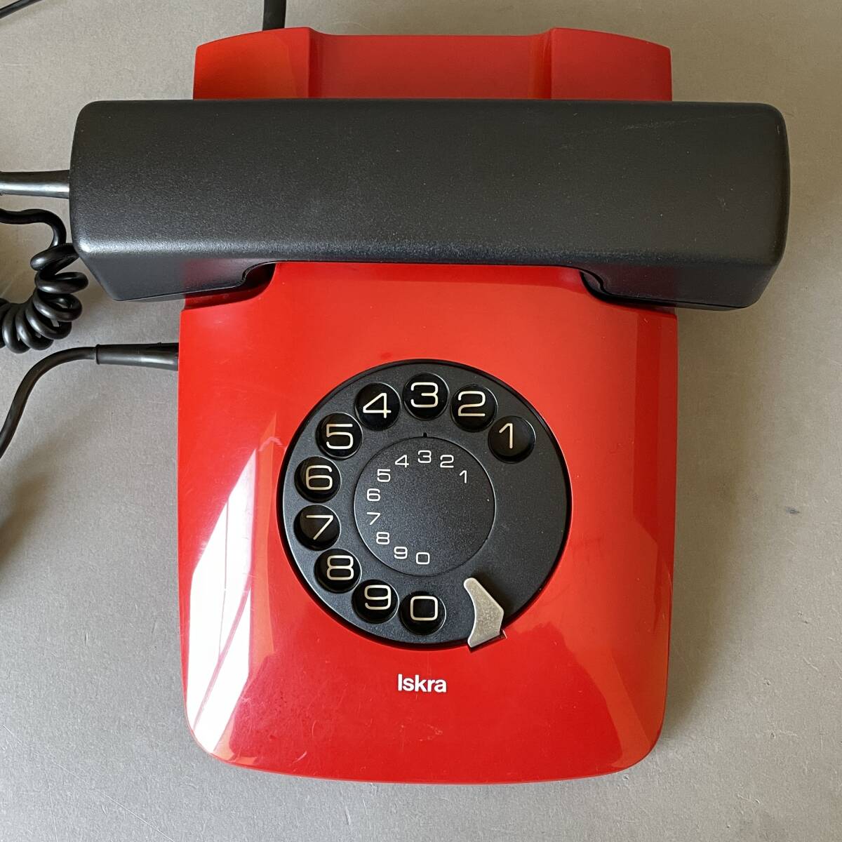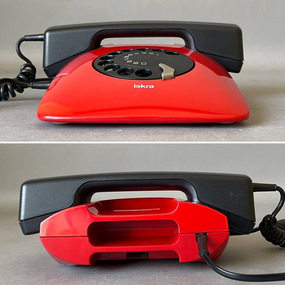MS3666 昭和レトロ ISKRA イスクラ ETA-82 「イ」 電話機 レッド 赤 昭和60年4月製造 ダイヤル式 (検)北欧 ミニマル ポップ モジュラー