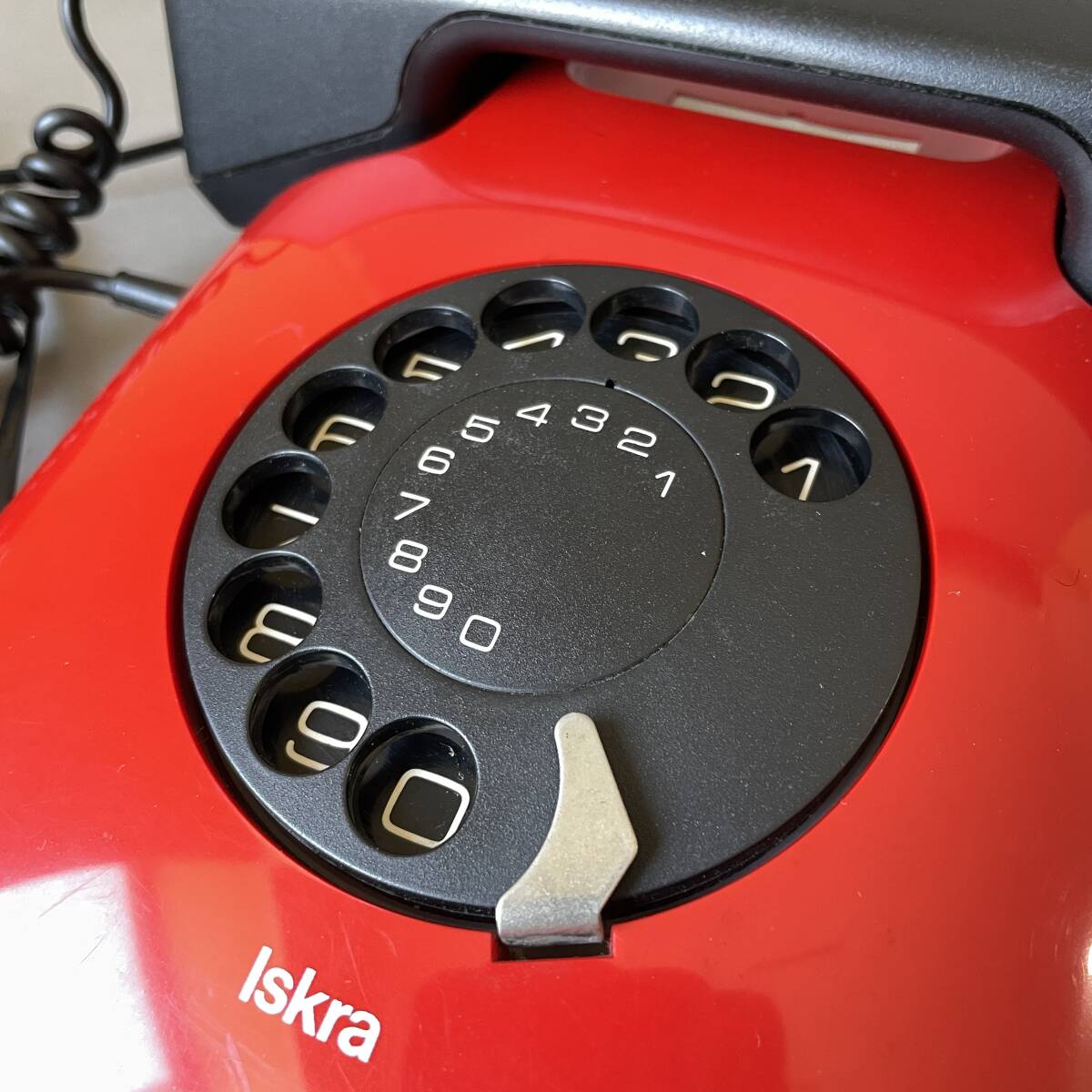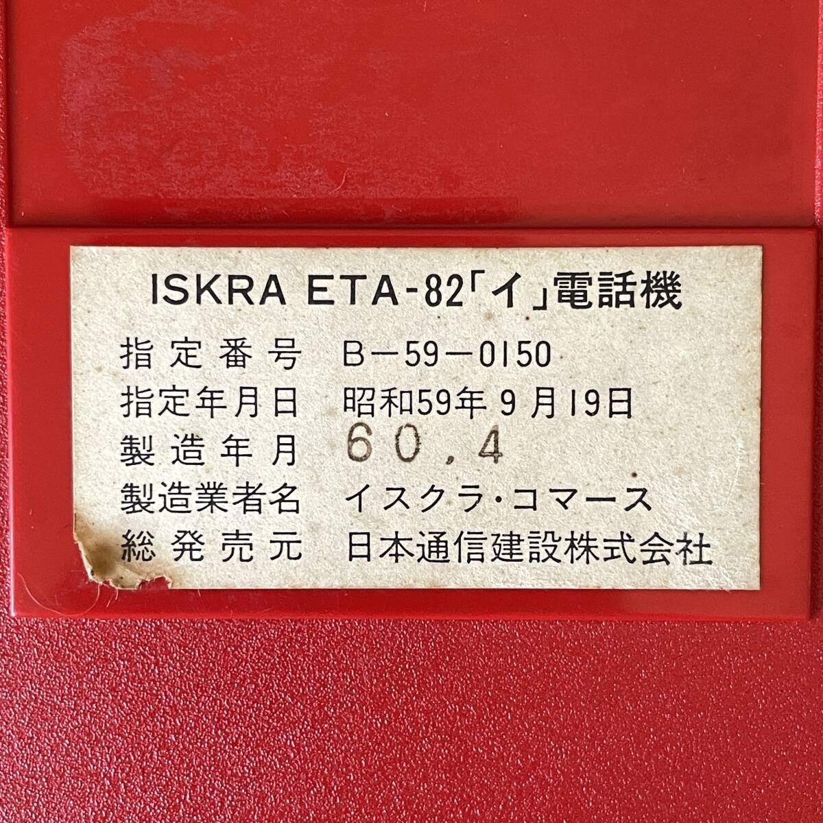 MS3666 昭和レトロ ISKRA イスクラ ETA-82 「イ」 電話機 レッド 赤 昭和60年4月製造 ダイヤル式 です。