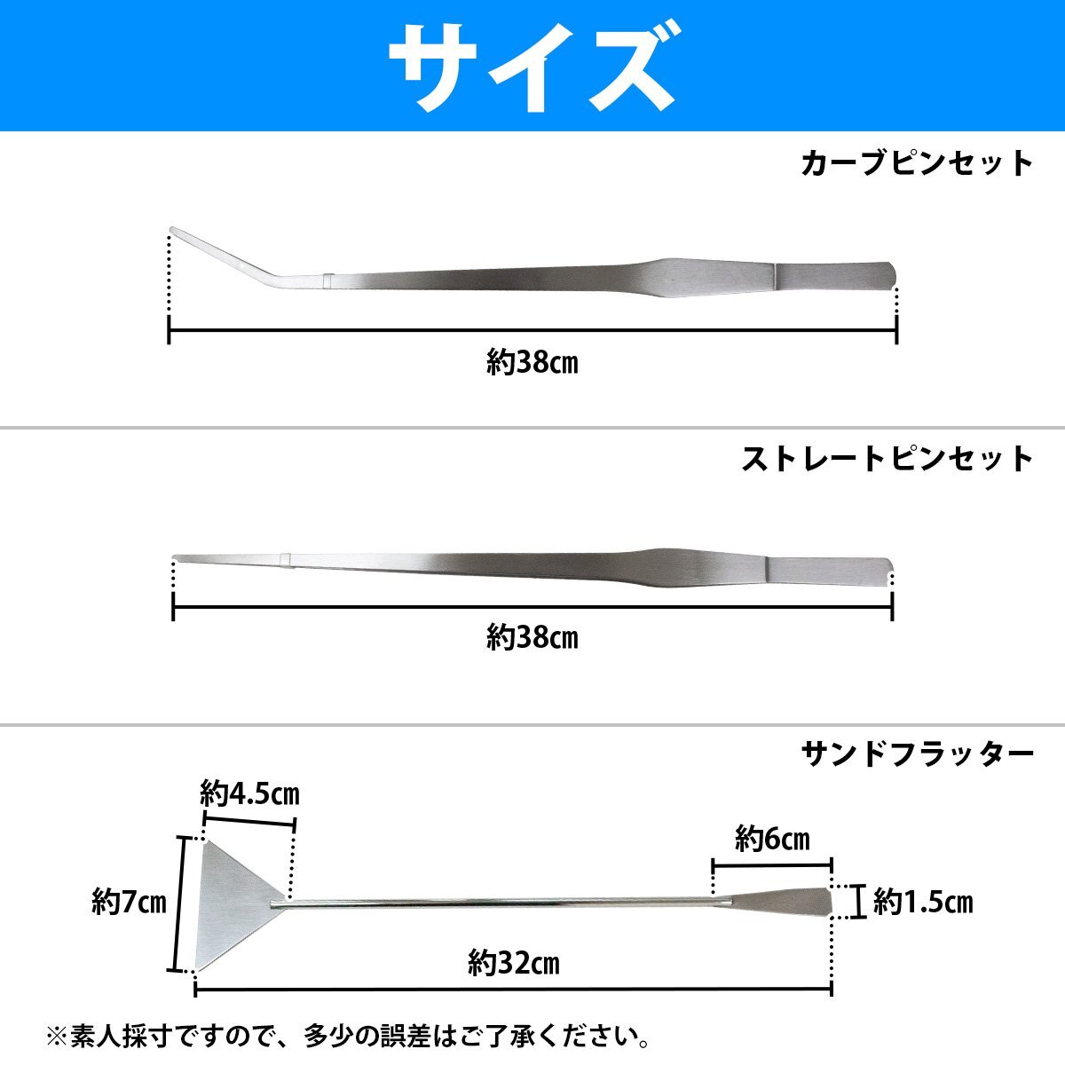 6点セット 『38cm ピンセット2種類 & 25cm ハサミ3種類 & フラッター 32cm』 水槽 水草トリミングキット