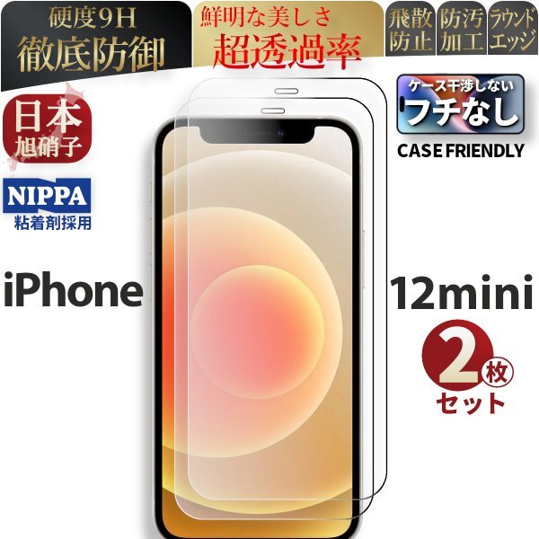 iPhone 12 mini 強化ガラスフィルム 保護フィルム 2枚セット 高品質 旭硝子 自動吸着 液晶保護フィルム