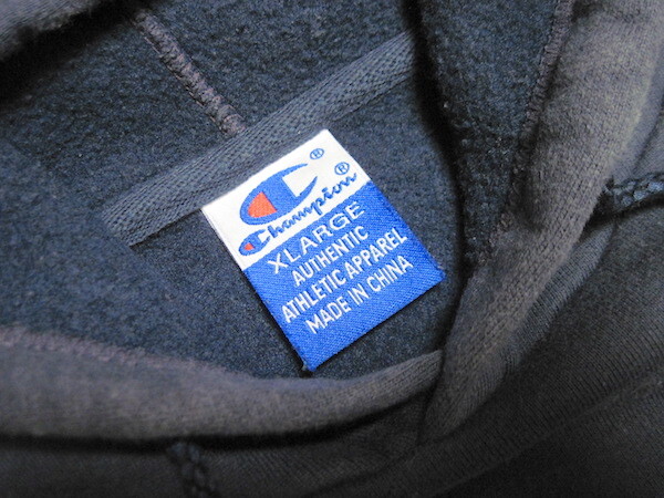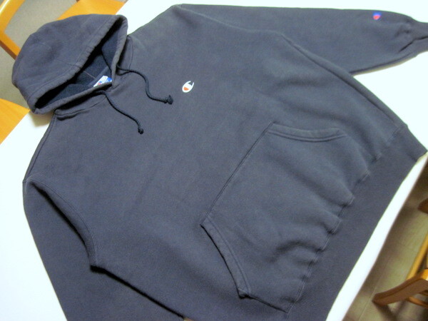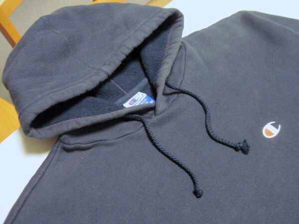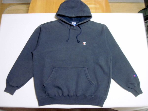 フリース風《Champion》スエットパーカー【XL】ネイビーグレー紺灰色_チャンピオン プルオーバーフード付 トレーナー調フーディジャケット