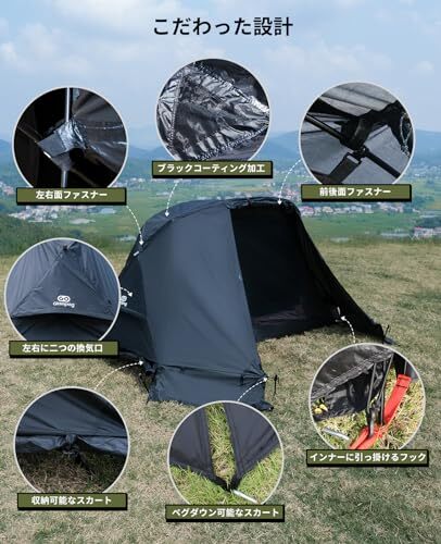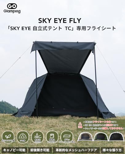 GOGlamping フライシートのみ 【SKY EYE FLY】SKY EYE 自立式テント 専用フライシート ツーリングドームテント/カンガルーテント用フライシート ソロ 1人用 防水「メッシュハーフドア」 前室あり 前後開閉可能 ベンチレーション付き 耐水圧3000mm アウトドア キャンプ用品 ブラック【SKY EYE CT/PLUS コットテント不適用】