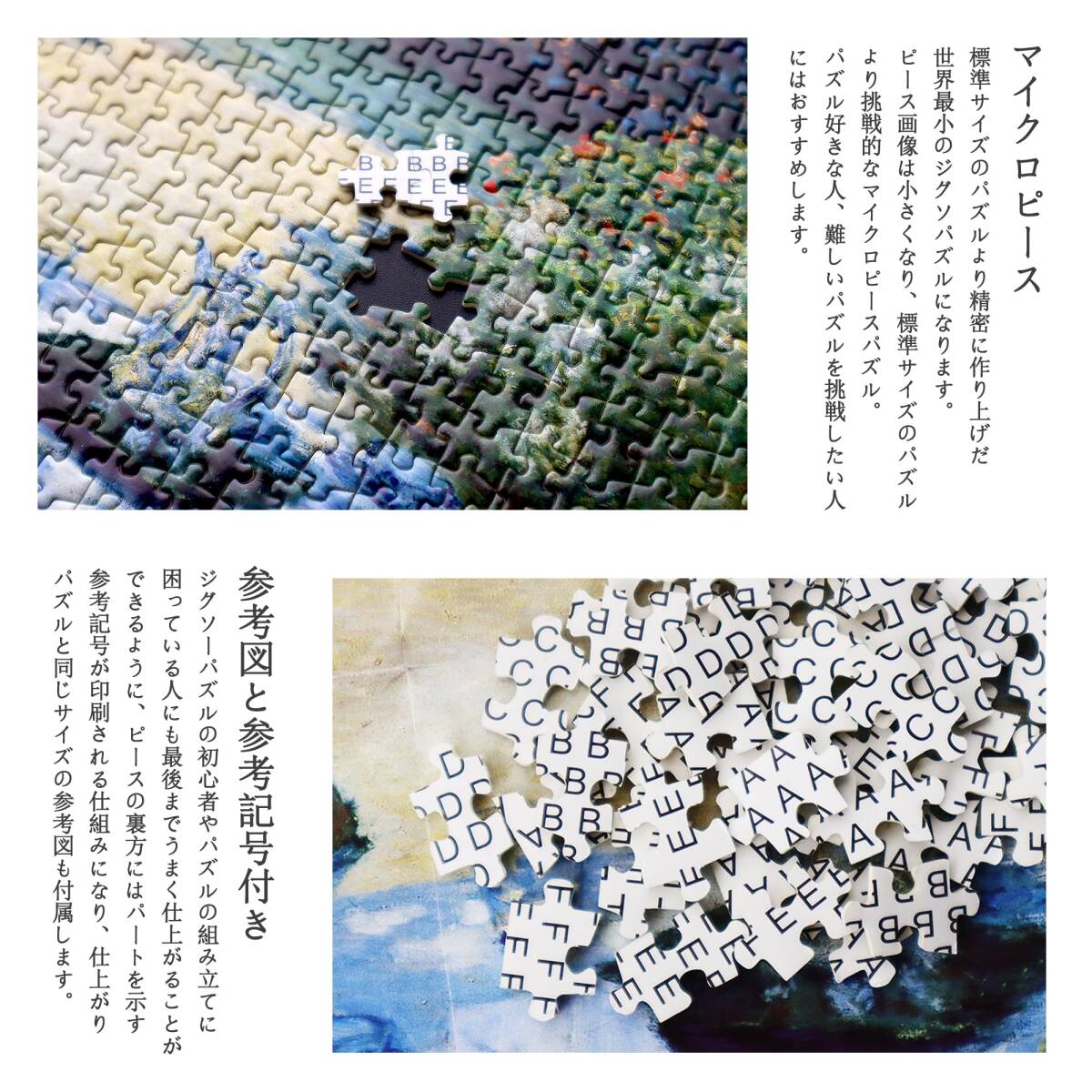 【マイクロピース】独自な裁断技術で精密に作り上げだ極小ピースパズル、それぞれのピースが違う形を持つ、正しいピースの噛み合いはぴったり、挑戦的でよりジグソーパズルを楽しむことが出来ます。