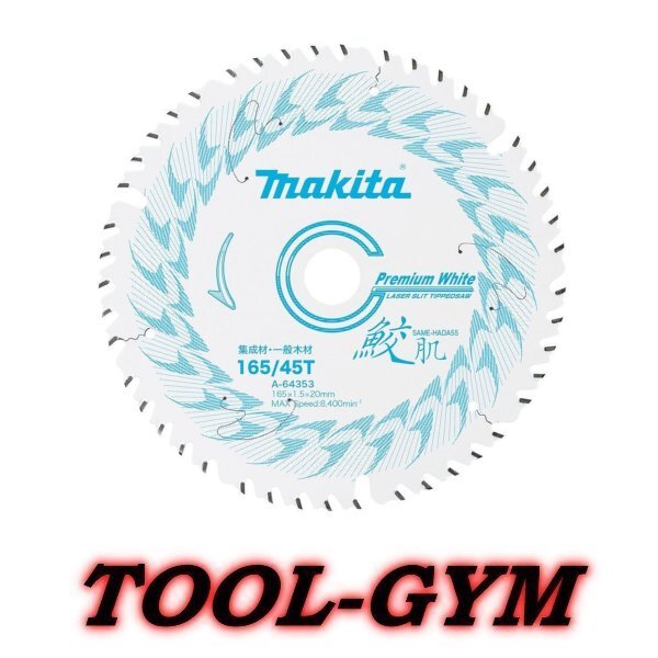 ■【メール便】マキタ 鮫肌 プレミアムホワイトチップソー 165mm 45枚刃 A-64353