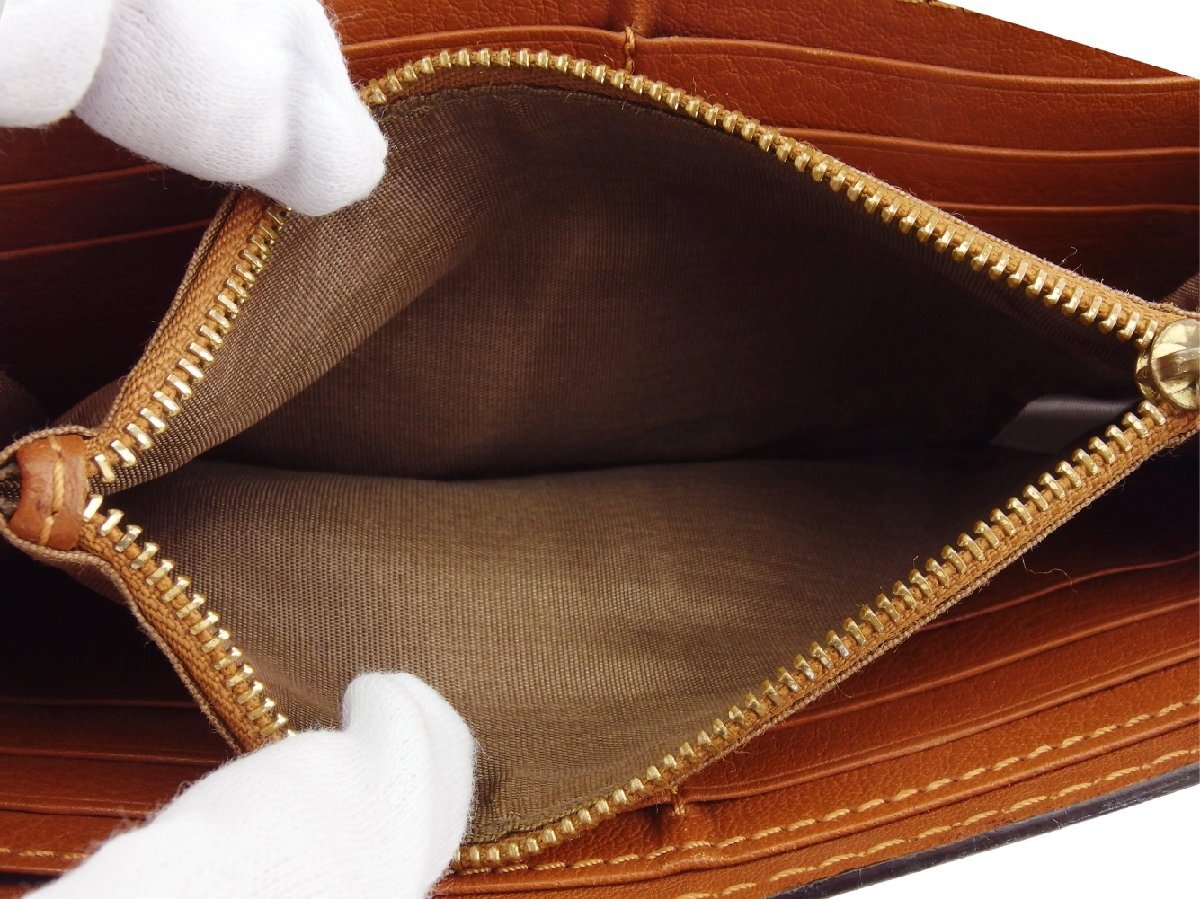 | コンディション | 全体の状態詳細:ランク6の中では比較的コンディションが良いお品物となります。社外リペア跡(スレ色着色)あり。その他 スレ&汚れ(内側&札入れ&小銭入れ&カード入れ&ポケットもあり) 傷 シミ(ポケット) コバヒビ割れ ヨレ(角&ファスナープル革) シワ(マチ付きスペース) 金具傷・ハゲ などの使用感があります。 |