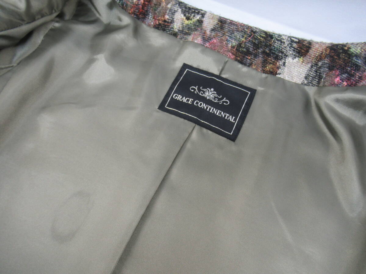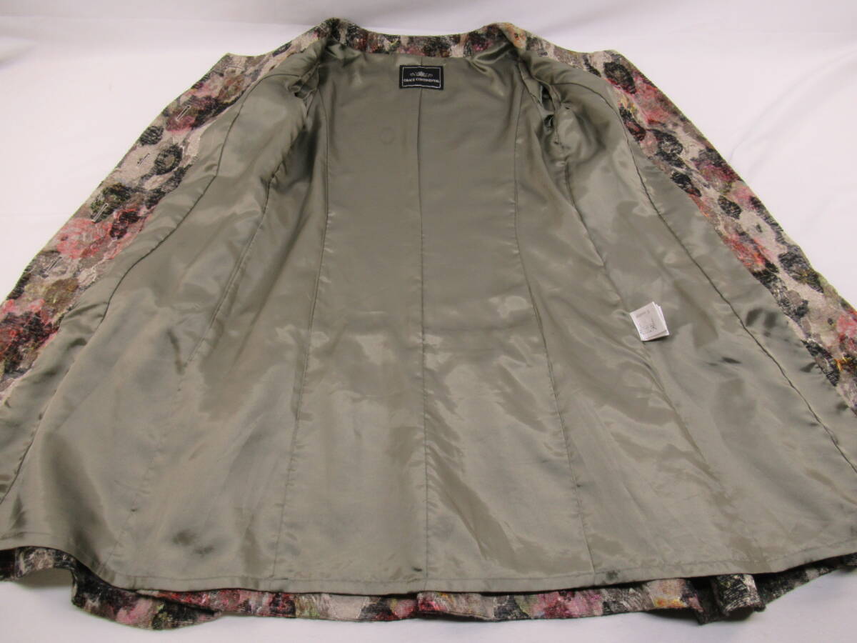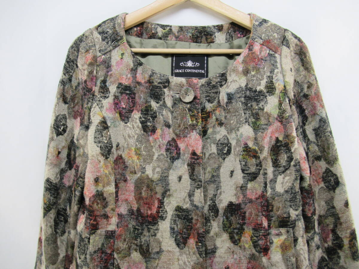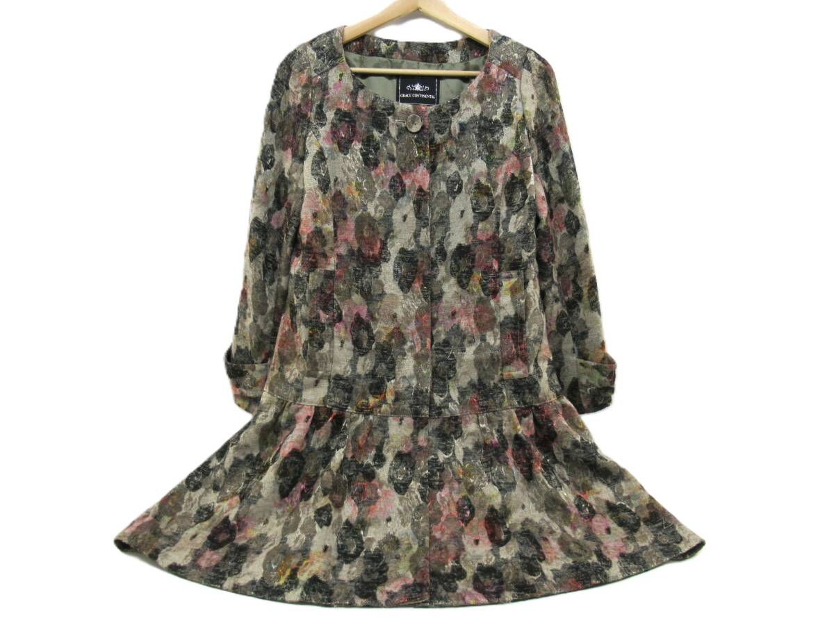 【送900円】3122 GRACE CONTINENTAL グレースコンチネンタル 花柄フリルコート ワンピース フレア 長袖 ポリ×アクリル 36