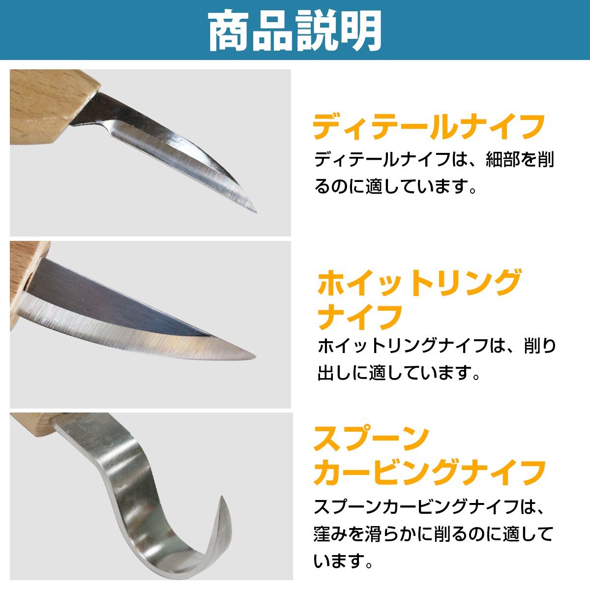【送料250円】彫刻刀 3本セット カービングナイフ 木彫り ナイフ スプーン マグカップ 図工 製作 工芸 クラフト グリーンウッド DIY