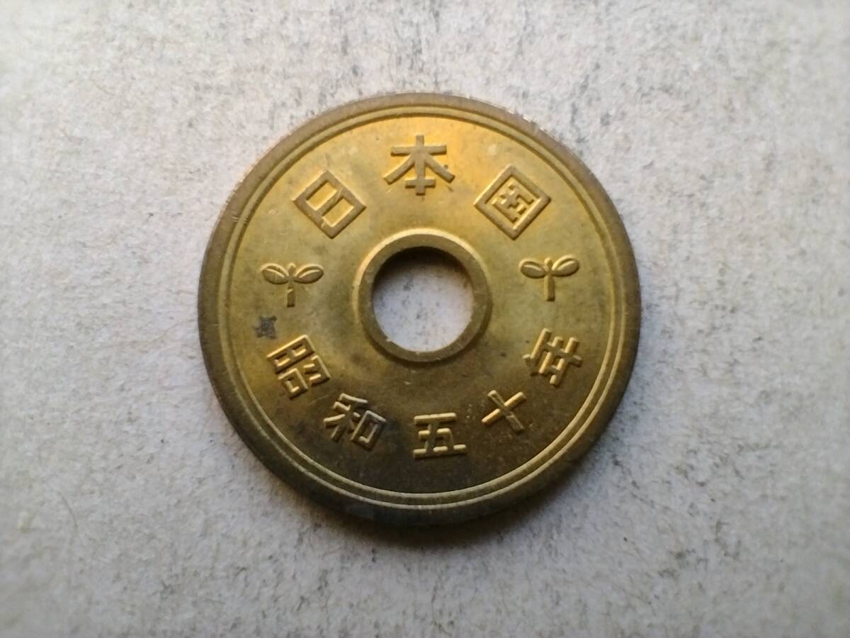 昭和50年 5円玉 5円硬貨 5円黄銅貨 昭和五十年 1975年 一九七五年 五円玉 五円硬貨 コイン メダル 貨幣 硬貨 黄銅 真鍮 ブラス 即決