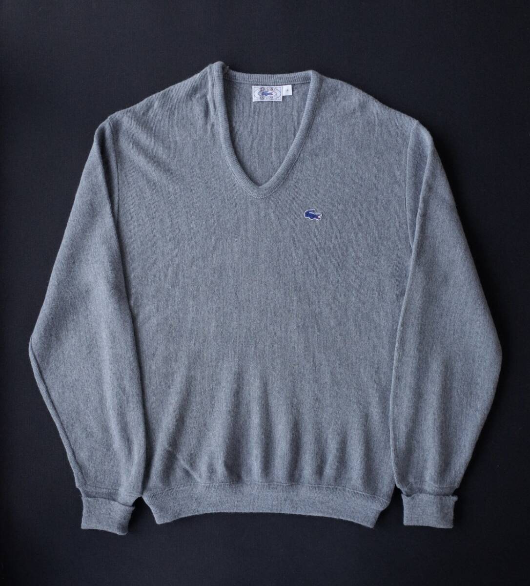 80'sビンテージ IZOD LACOSTE ラコステ Vネック アクリルニット セーター L グレー 青ワニ