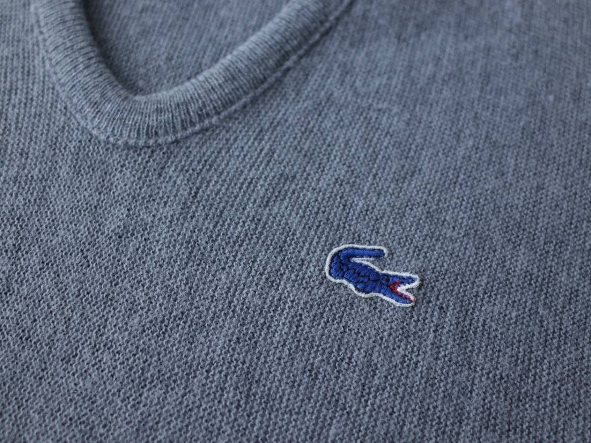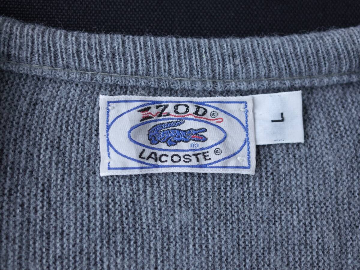 【 80'sビンテージ IZOD LACOSTE ラコステ Vネック アクリルニット セーター L グレー 青ワニ 】