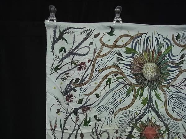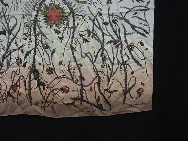 1円 ChristianDior クリスチャンディオール シルク100% スカーフ ストール ショール レディース グリーン系×ピンク系 FU7222