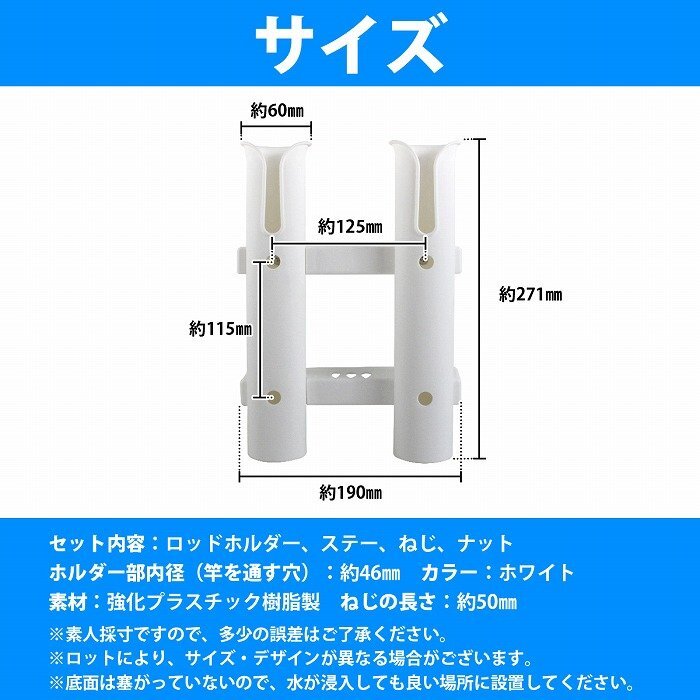 [2連] ロッド ホルダー 竿 立て 置き 入れ 釣り フィッシング スタンド ネジ付き 固定 船 漁船 ボート ヨット 白 ホワイト
