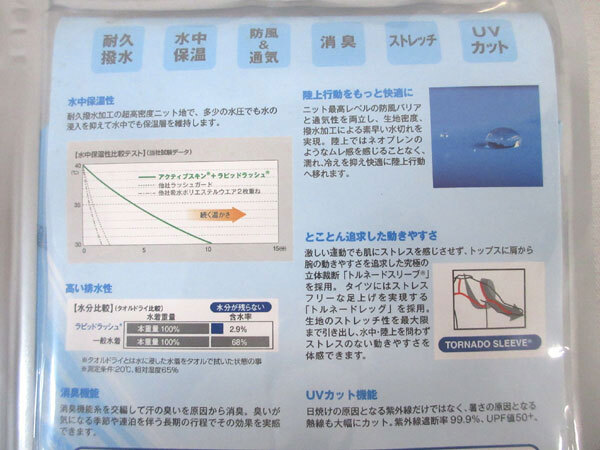 | 内 容 | ■レディース ファイントラック ラピッドラッシュ ロングスリーブ(FWW0421) ■サイズ:L(バスト84-92cm) ■カラー:アクア ■日本製 ◆参考価格 10120円相当 ストレスのない着用感と動きやすさを追求した ウォータースポーツ用の高機能ウエア。 最高レベルの撥水性を備える高密度の生地と、 肌のストレスを軽減する縫合「フラットシーマー」を採用。 さらに、動きを妨げない「トルネードスリーブ」の革新的なパターンを採用することで、 ずぶ濡れの状態でも快適な動きを可能にするストレスフリーを実現しました。 水中と陸上での温かさと動きやすさを両立。 100洗80点の優れた耐久撥水性。 消臭機能、UVカット機能(紫外線遮断率99%以上)。 適度な水中保温性と陸上でも蒸れにくい通気性を備え、 沢登りやパドリングスポーツなどの、水中と陸上を行き来する、 温かい時期のウォータースポーツにおすすめです。 |
