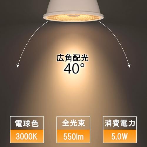 【高輝度・省エネLEDスポットライト】高品質のLEDチップを採用し、5Wの消費電力で550lmの明るさを提供。従来の50Wハロゲン電球と比べて、明るさを維持しながら消費電力を約90%削減します。