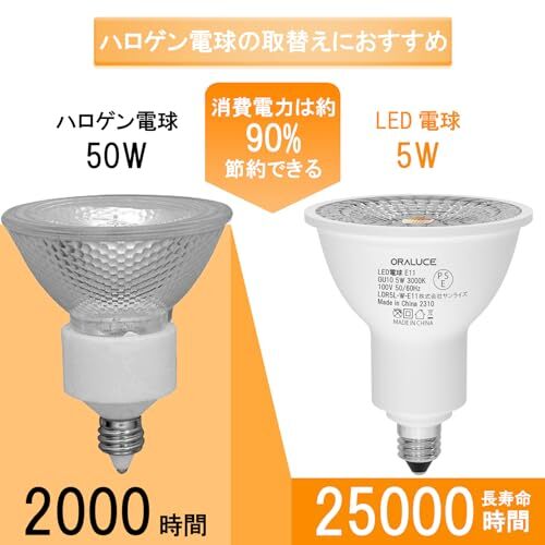 電球色 ホワイト 6個入 ORALUCE LED電球 E11口金 ハロゲン電球 50W形相当 電球色 3000K 5W 550lm