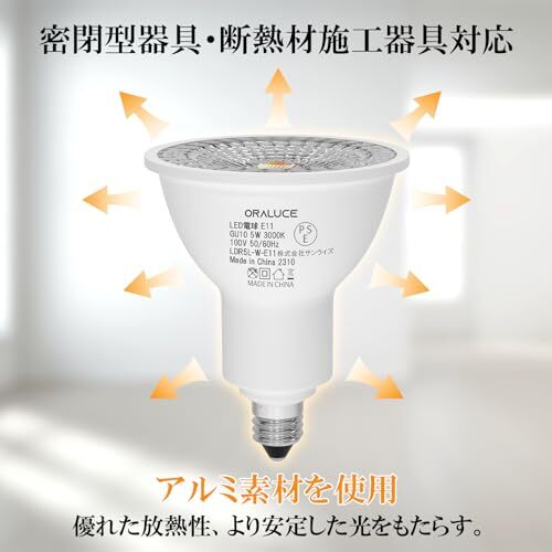 【取付け簡単・密閉形器具対応】標準E11口金を採用しており、既存のハロゲン電球から簡単に交換可能です。ほとんどのE11器具に適合し、優れた放熱性を持っているため、密閉型器具にも使用できます。