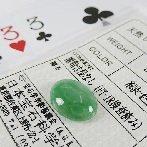 | 品名 /【SJ】新品 ヒスイ(ジェイダイト)5.96ct ジュエリールース 材質 / 天然ヒスイ(ジェイダイト) 縦・横 / (約)14.3mm 10.8mm 厚さ / (約)4.6mm 総重量 / 5.96ct 日宝協ソーティング付き 【SJ】/ 新品製品 品番 / ACD514 参考小売価格 / 308,000円 |