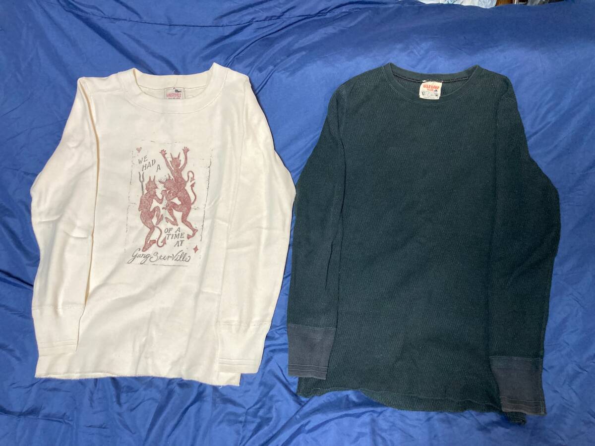 ギャングスタービル グラッドハンド、特厚長袖アイボリー生成り 黒サーマル 2枚セット、 オリジナルボディUSAファブリック、 Sサイズ 、