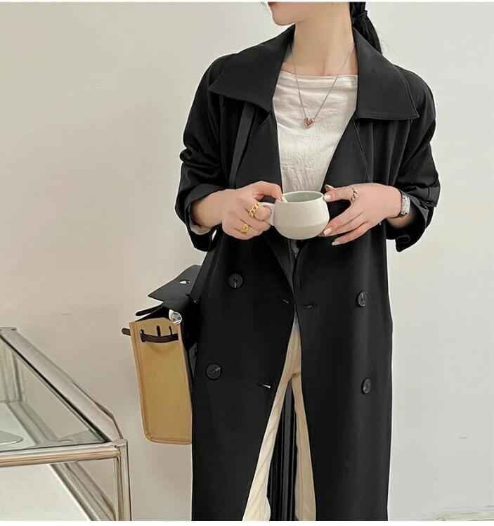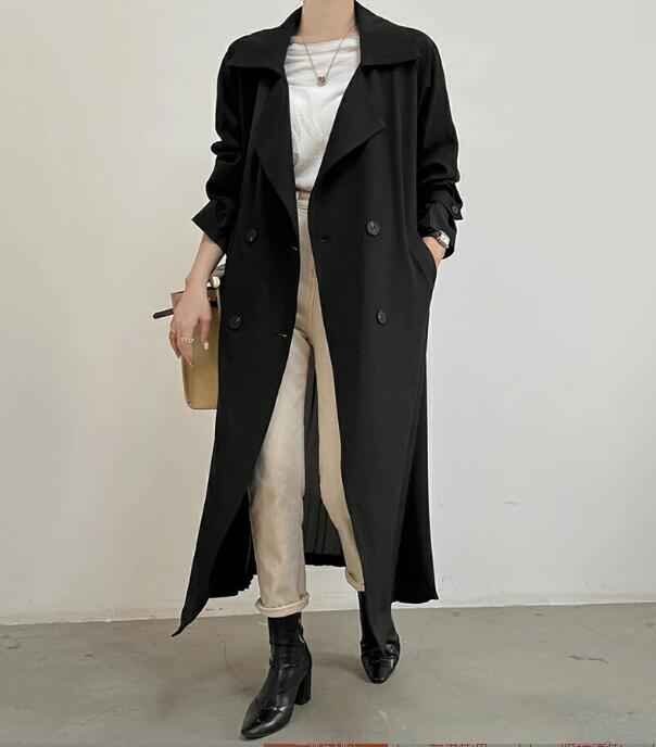 秋冬新作 韓国風 ロングウインドブレーカー レディース コート M ブラック