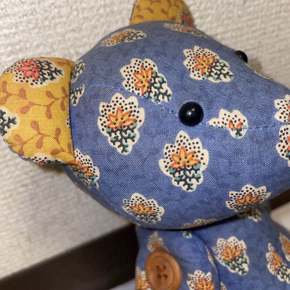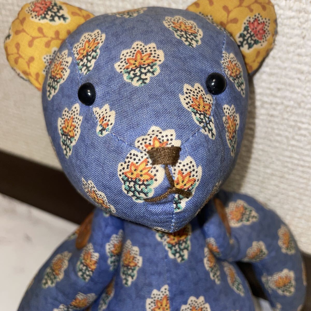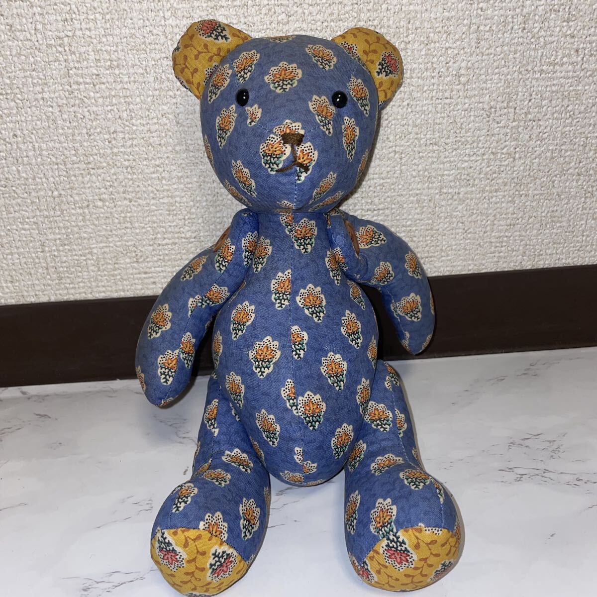 清楚で可憐な野の花を小紋柄にデザインした生地を使用した、テディベアです。